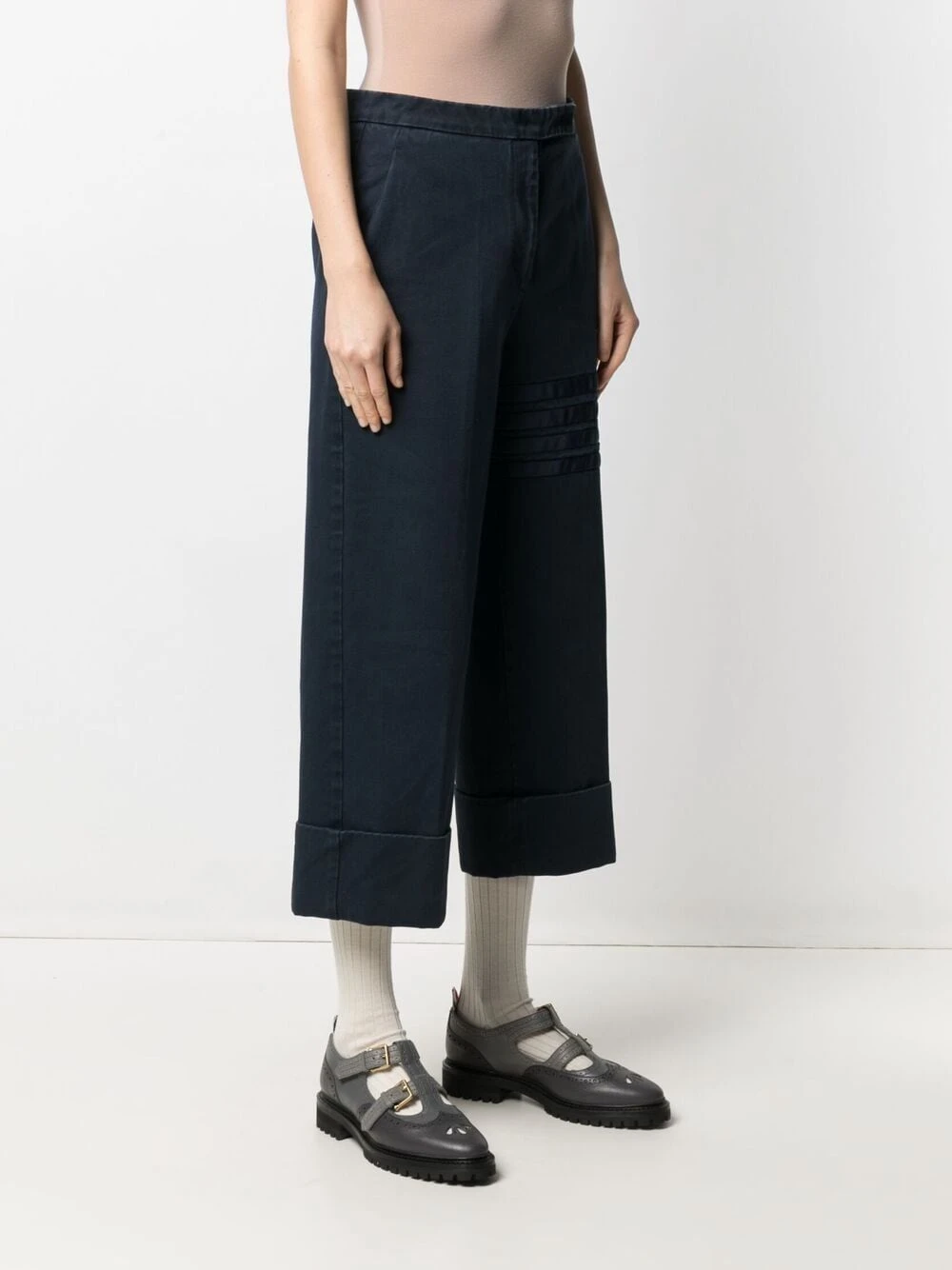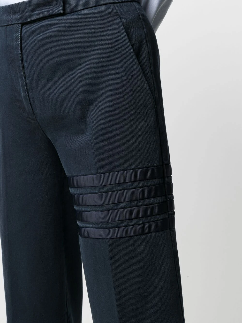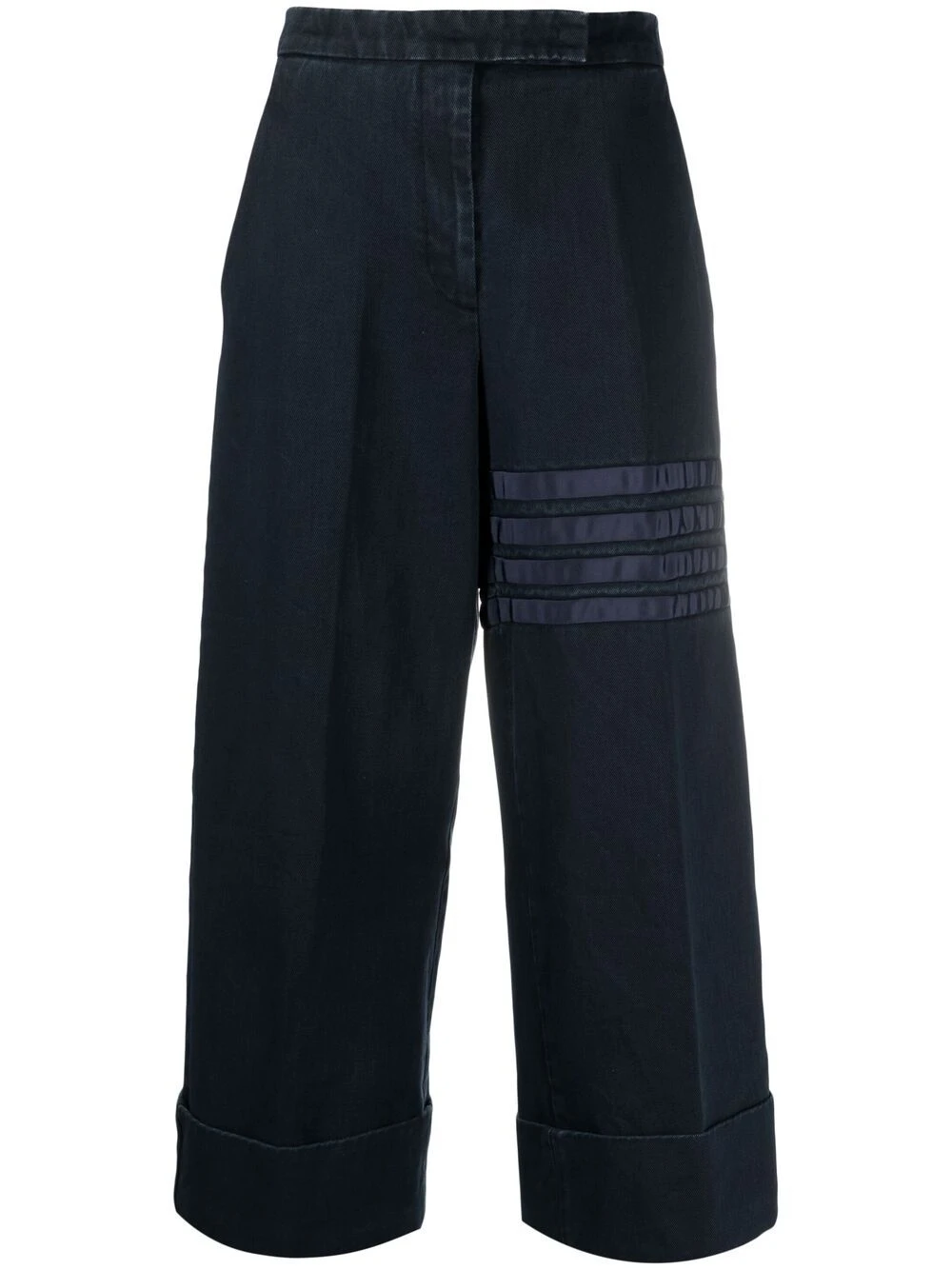 Prefer to keep your trousers short and sweet? Thom Browne has got you covered (where it matters at least) with these 4-Bar stripe cropped trousers that finish above the ankle and boast a charming preppy design. To keep it brief, it’s a wardrobe winner.Β