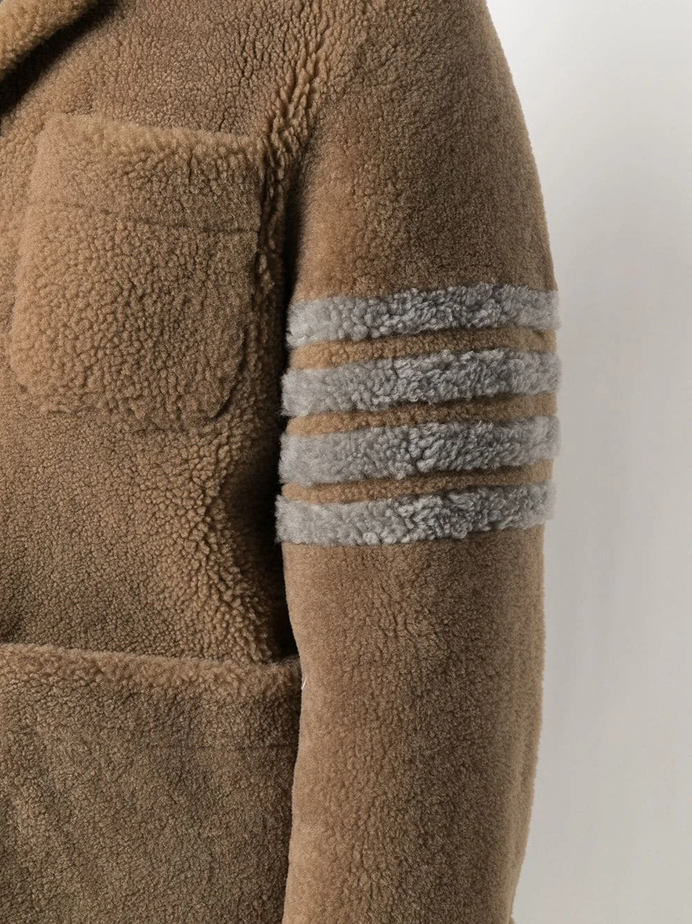 Choice is the spice of life, right? That’s why Thom Browne gives you this reversible shearling jacket decorated with the brand’s signature stripe detailing at the arm. Which way will you wear it? Let your mood decide.