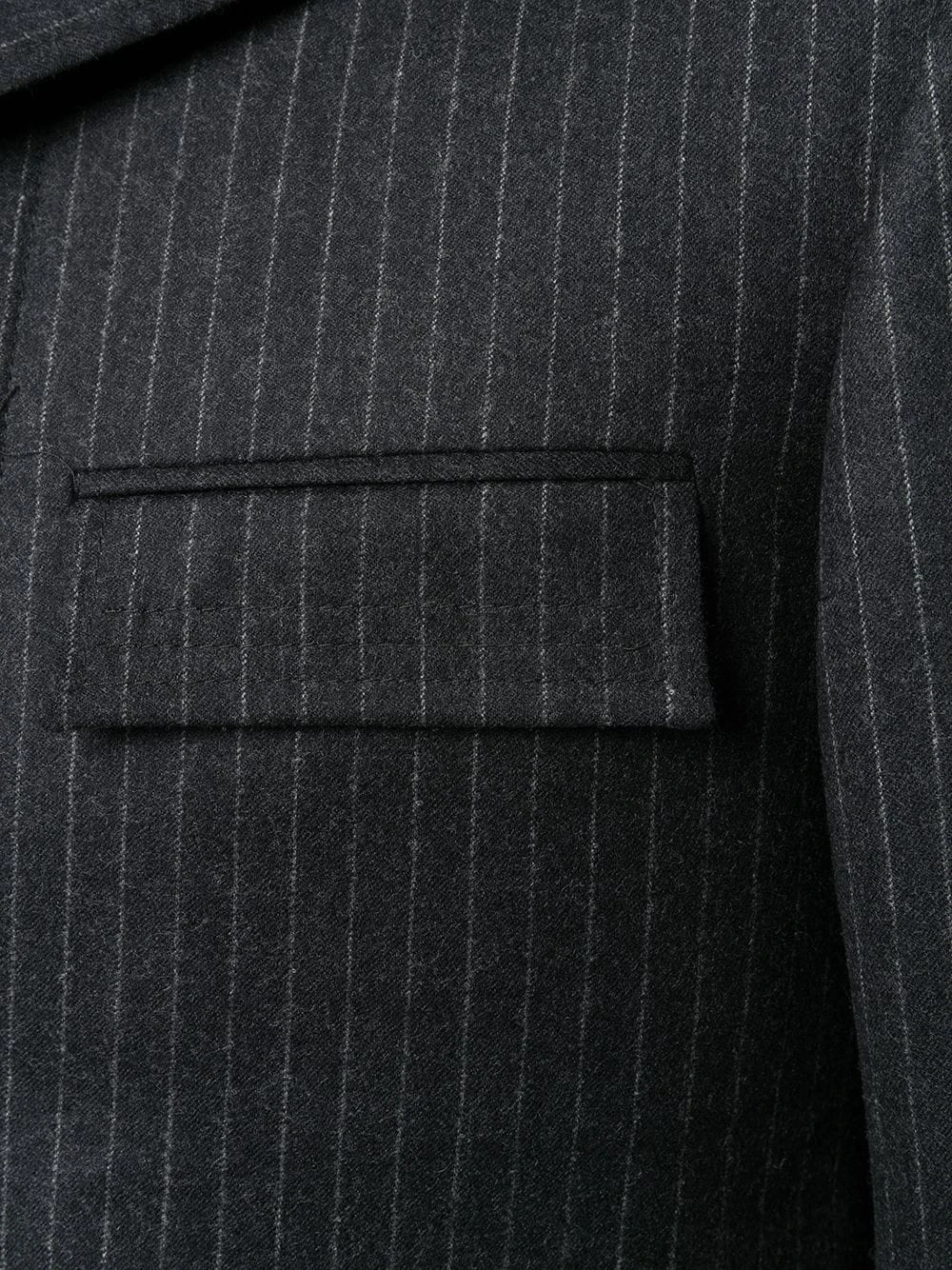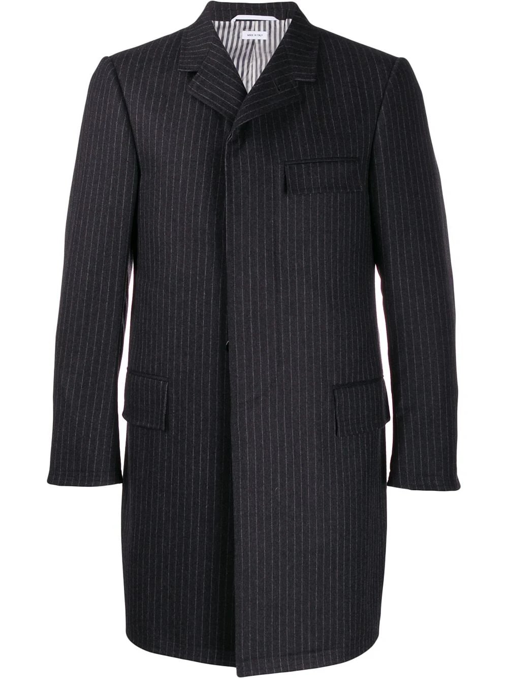Everyone needs a formal coat and this one is calling your name. Designed in the style of a blazer, this dark grey wool chalk-stripe Chesterfield overcoat from Thom Browne offers the perfect balance of practicality and dapper style. Emulate the designer’s style with ease. Featuring notched lapels, a front button fastening, a chest pocket, long sleeves, two front pockets, button cuffs, a striped pattern and a double vent to the rear.