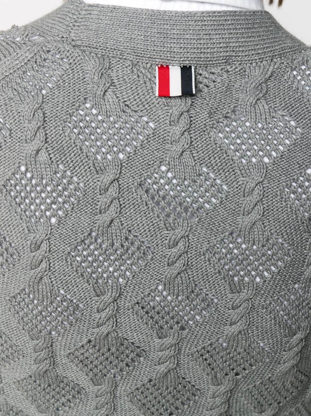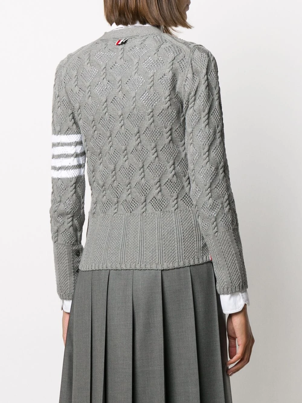 You’re already a fan of Thom Browne’s designs. Known for his innovation in tailoring, a modern spin is now placed on knit patterns. Featuring a V-neck, front button fastening, fan cable knit and signature tricolour stripe tab. What’s ‘knit’ to love?