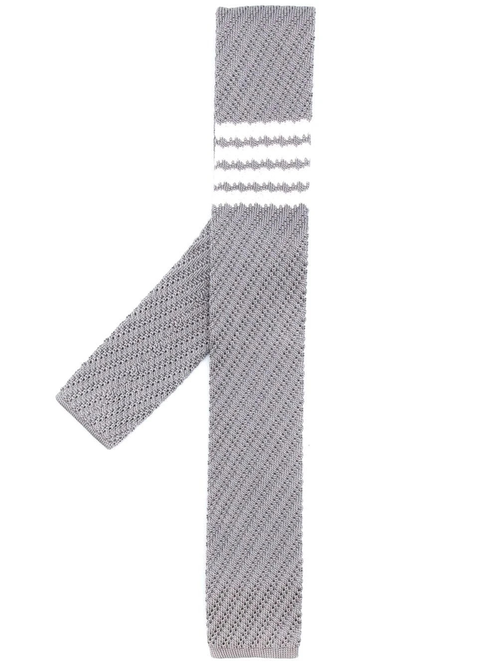Complete your officewear portfolio with some typical Thom Browne sophistication. Knitted from soft silk, this adjustable tie is punctuated by the brand’s signature 4-bar detail for added appeal. Suits you.