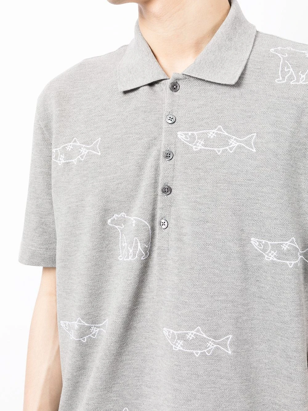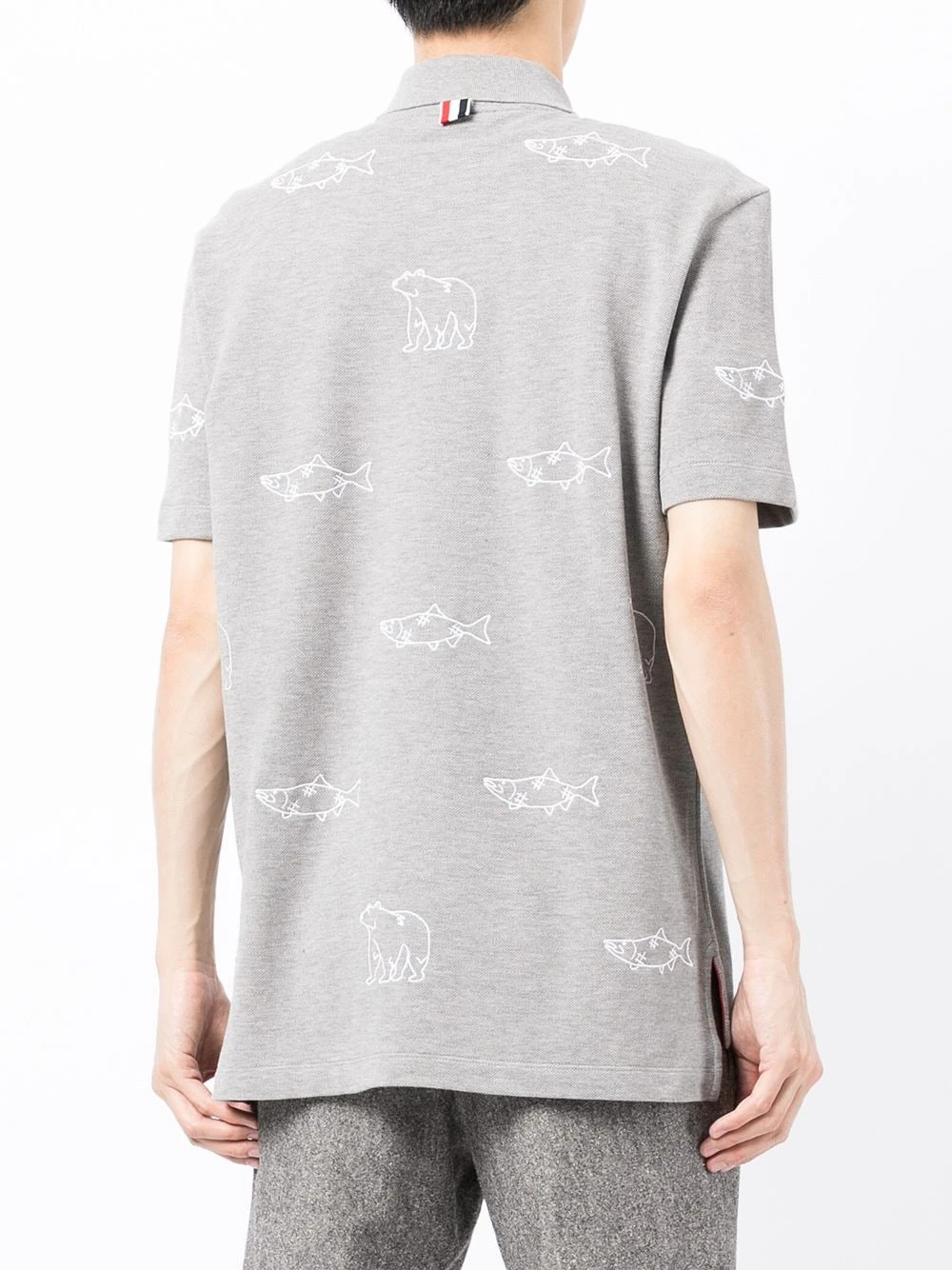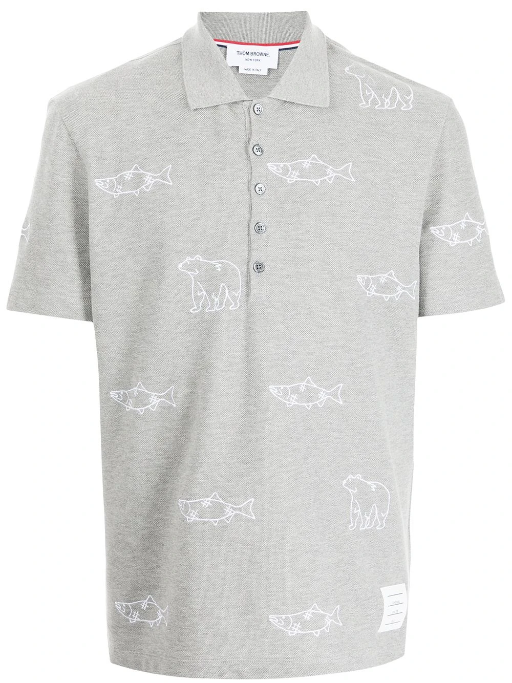 Whether you’re at land or sea, Thom Browne’s bear fish embroidered polo shirt has got you covered. Crafted from a light grey cotton and detailed with white stitching, this top will keep you looking good on whatever journey you embark on. A look for the road.