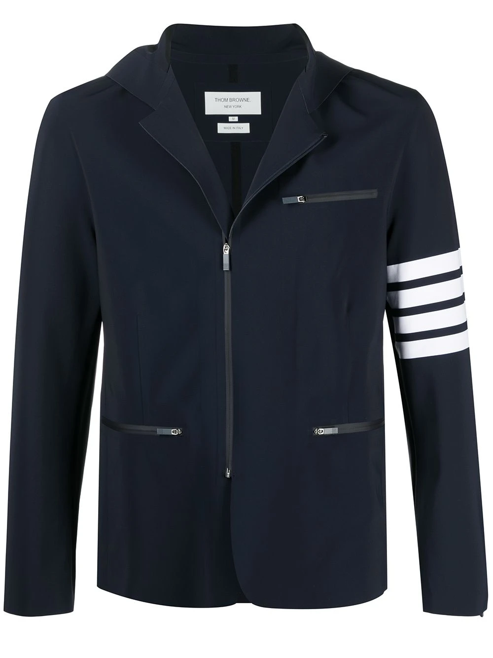 Gear up and get moving. This Thom Browne half-zip hooded performance jacket is ready to keep you feeling fresh even when you’re breaking a sweat during a workout. Lighten up and get physical with this jacket.
