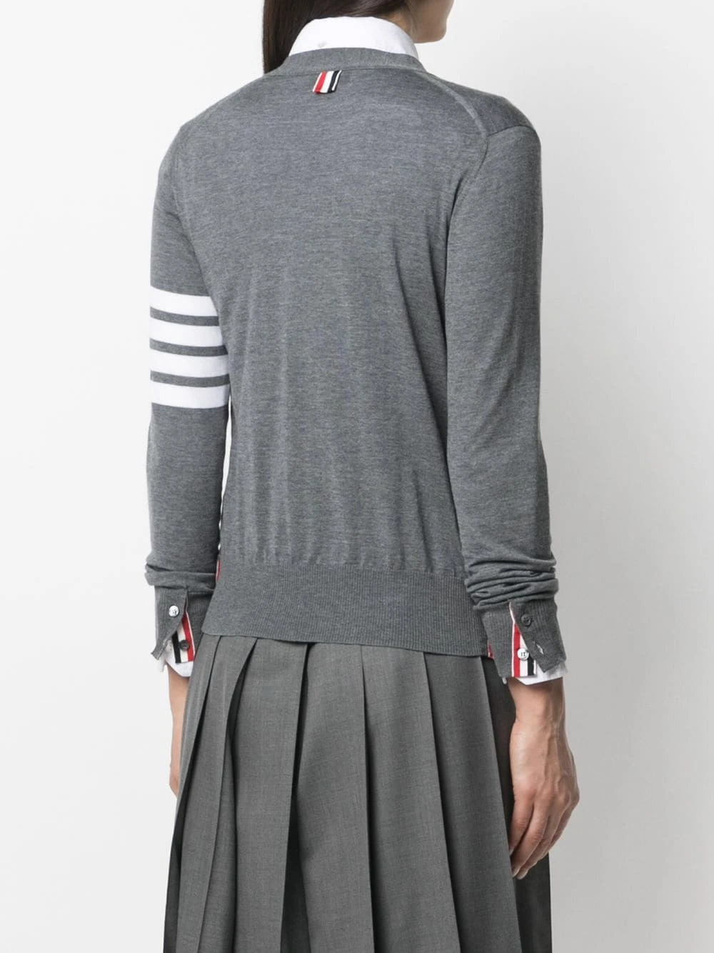 Thom Browne is best known for sharp suiting, but there’s more than one way to look smart. Spun from wool, this cardigan features the brand’s signature 4-Bar stripe on a single sleeve. Button up.