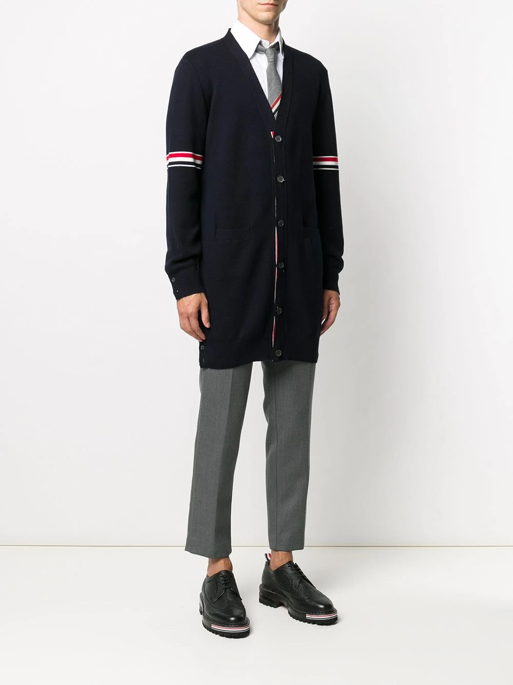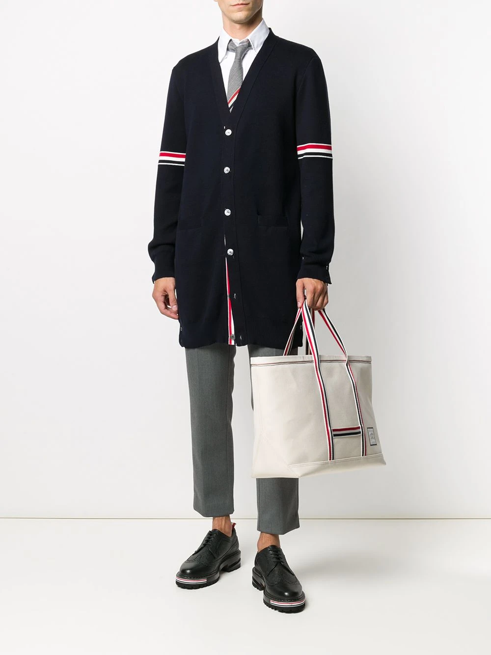Looking for the perfect preppy staple to compliment your current office rotation? Why not try this Thom Browne Milano stitch long cardigan on for size? You might find it fits a little snug but that’s all part of its signature charm.