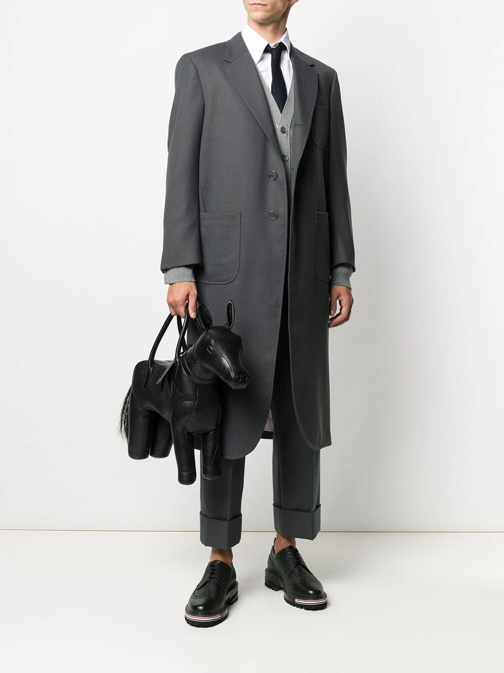 There are approximately eight million things to talk about when it comes to this Thom Browne cardigan, but we’d like to concentrate on the Milano stitching. If you look closely, the textured weaving is the result of two yarns being knit diagonally. We always knew that, and definitely didn’t just Google it out of amazement. Nuh-uh.