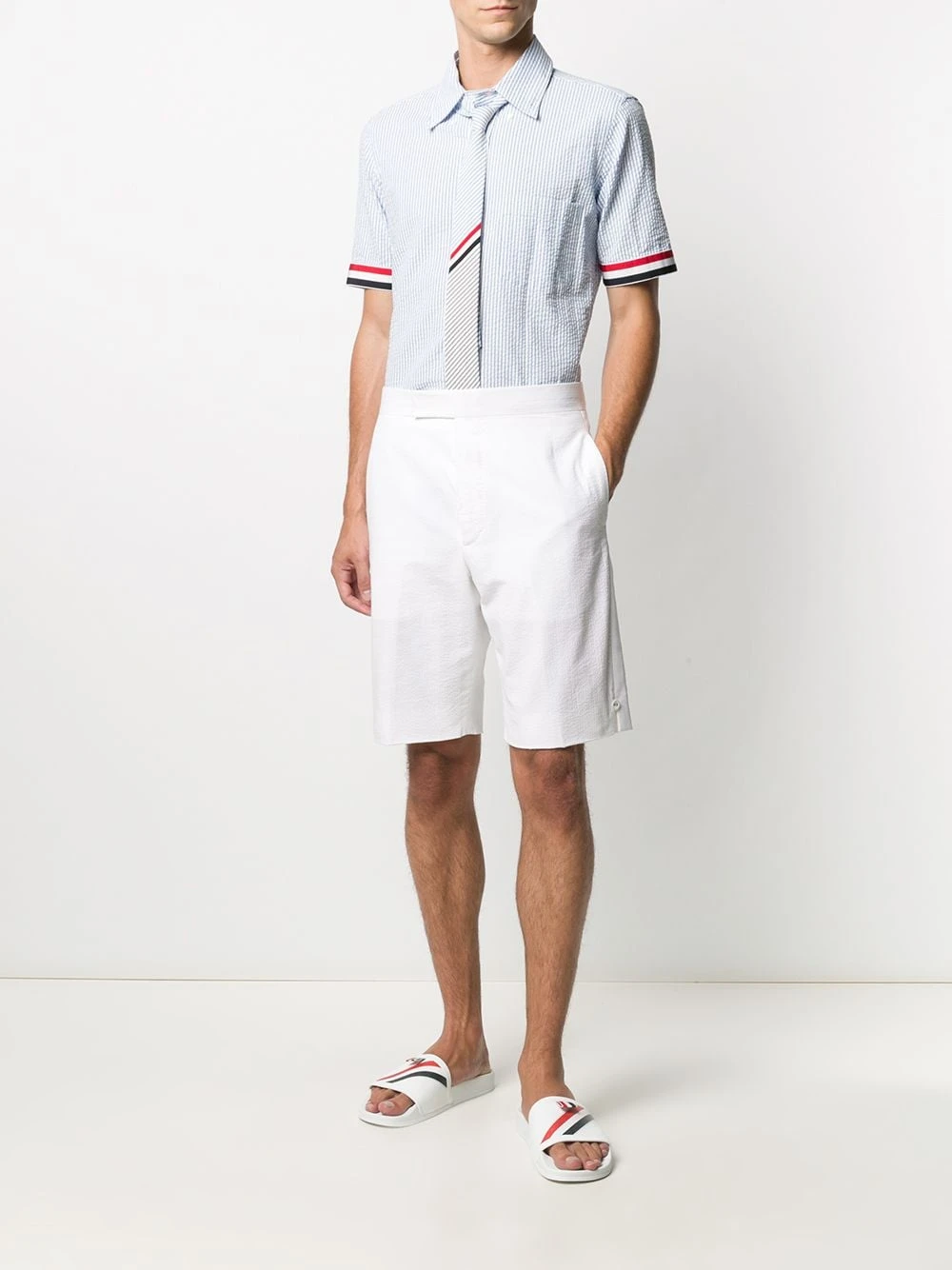 Stripes always seem to be there. From classic to casual wear, this blue short sleeve shirt from Thom Browne has the power to elevate any look. Undoubtedly, a timeless choice.