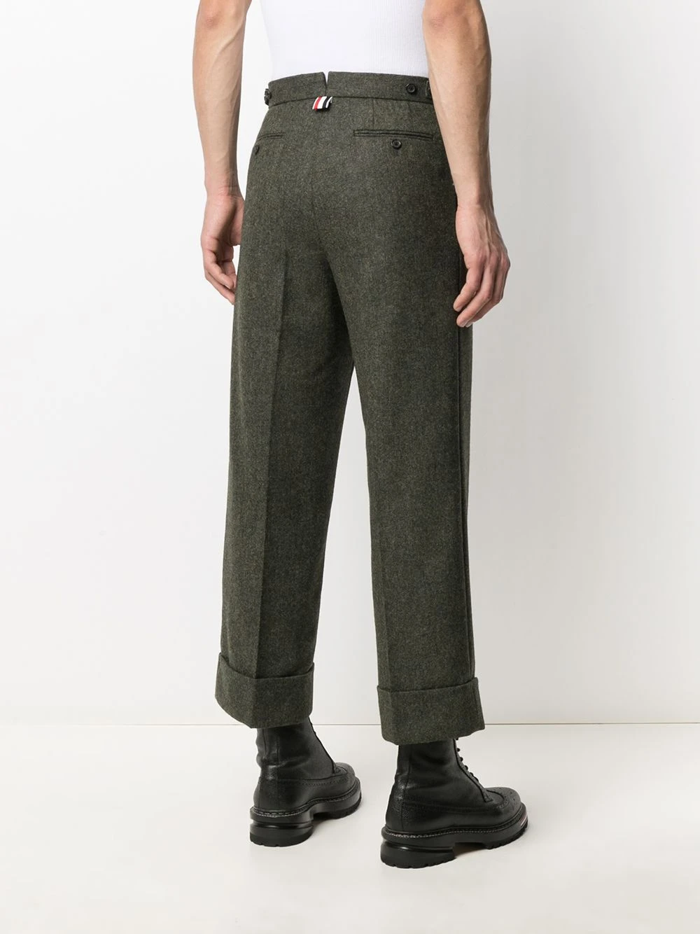 Tinker, tailor, satorial, style. In a sleek tailored cut, the season-defining trousers from Thom Browne are here, boasting a medium grey hue and straight-leg. Get tinkering.