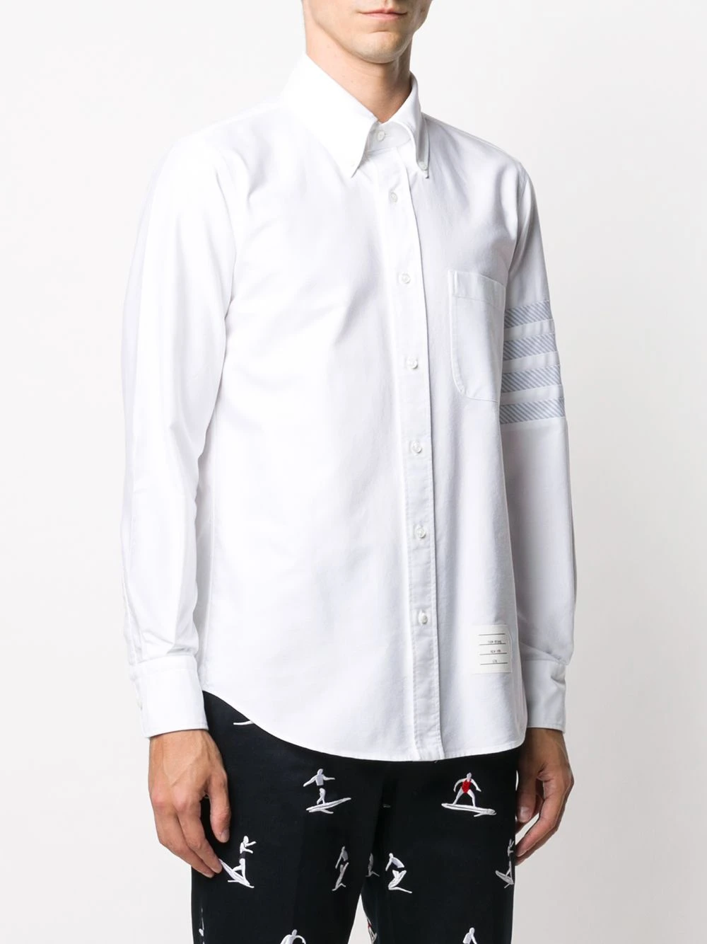 No one does preppy tailoring like Thom Browne. This 4-bar Oxford shirt showcases the brands signature motifs. With a 4-Bar stripe pattern, it’s the quintessential TB piece.