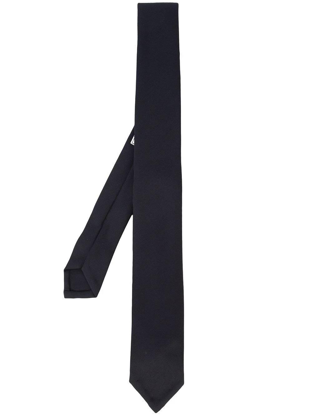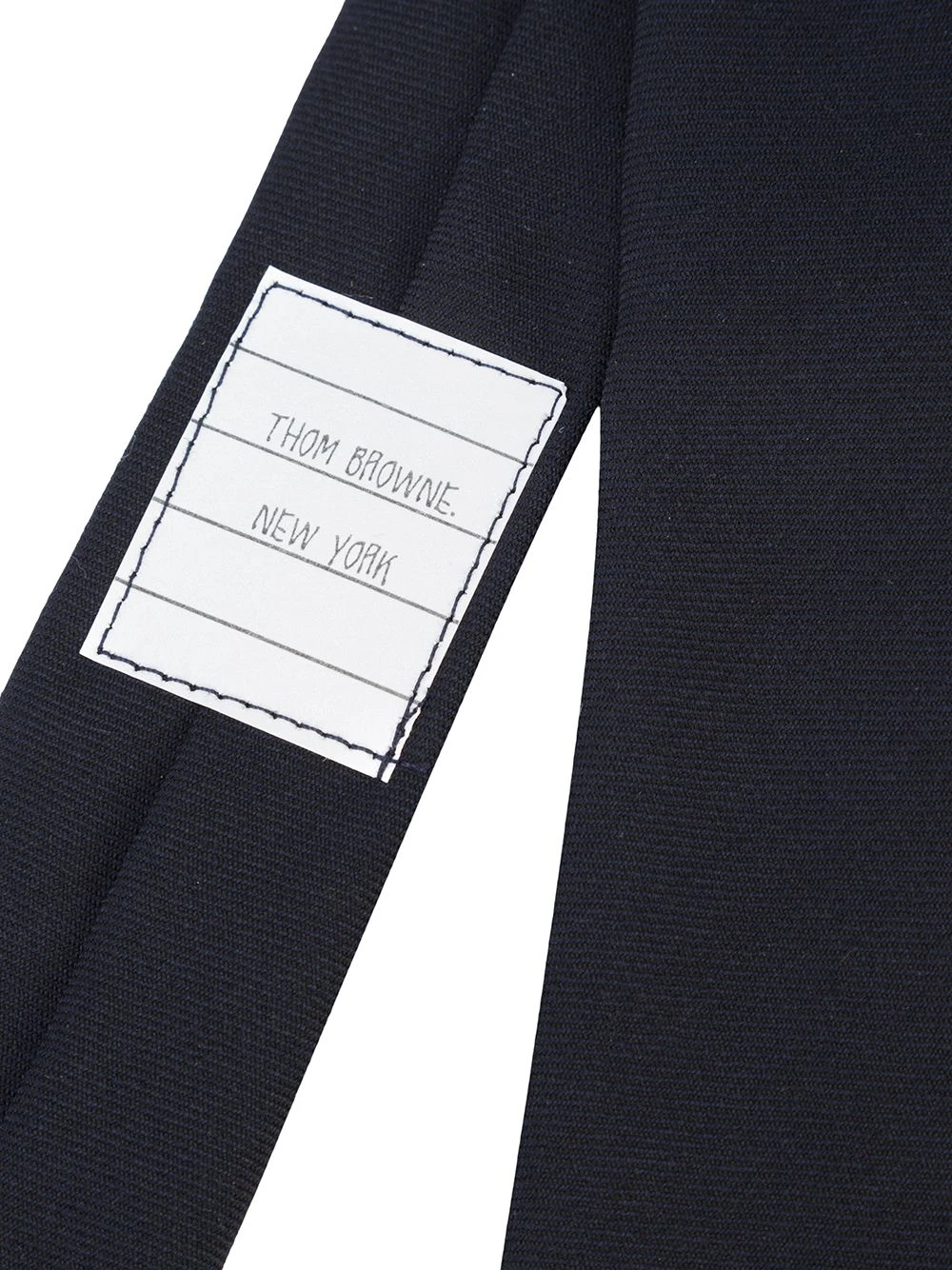 Navy blue wool classic necktie in school uniform plain weave from Thom Browne.