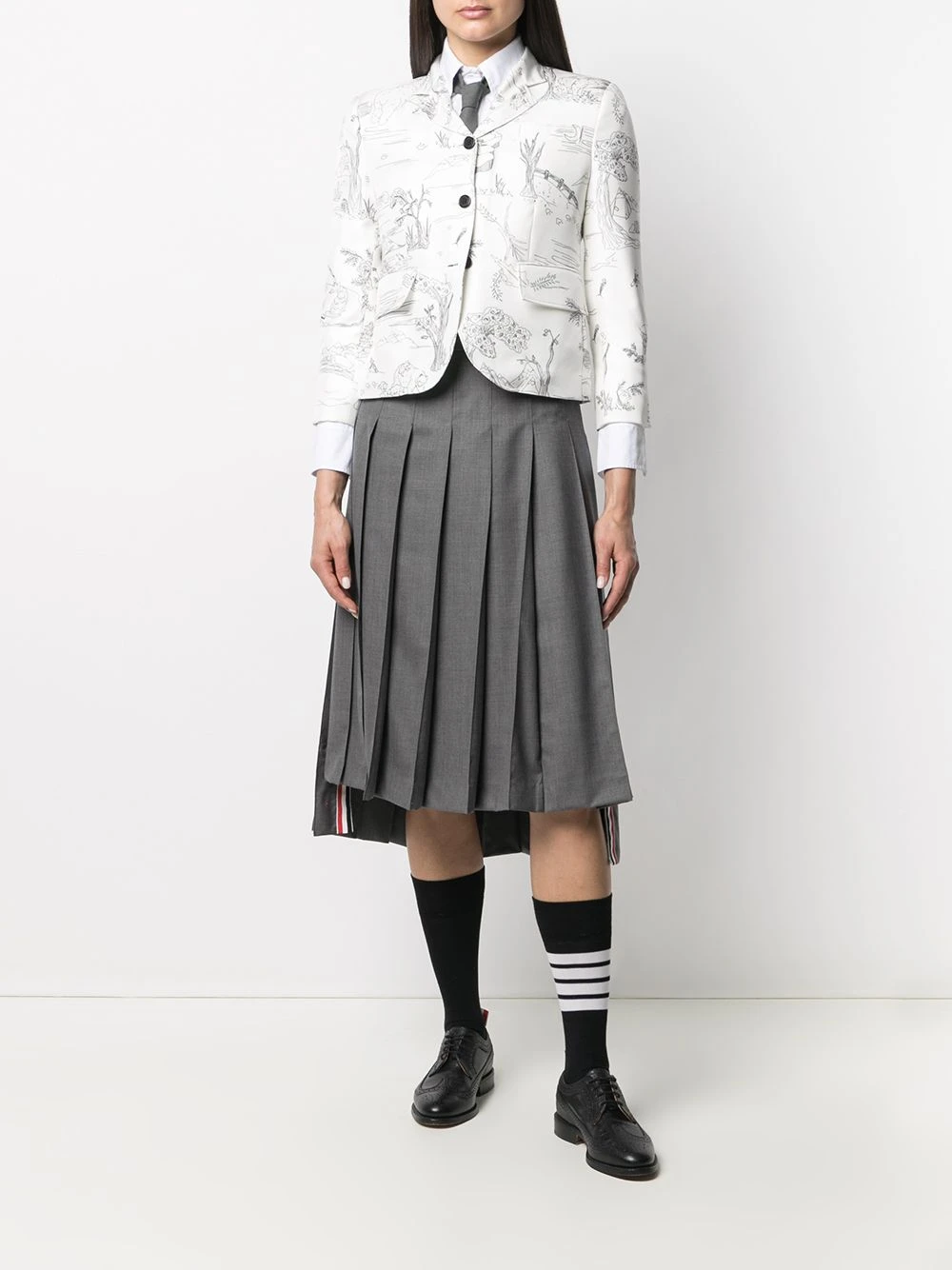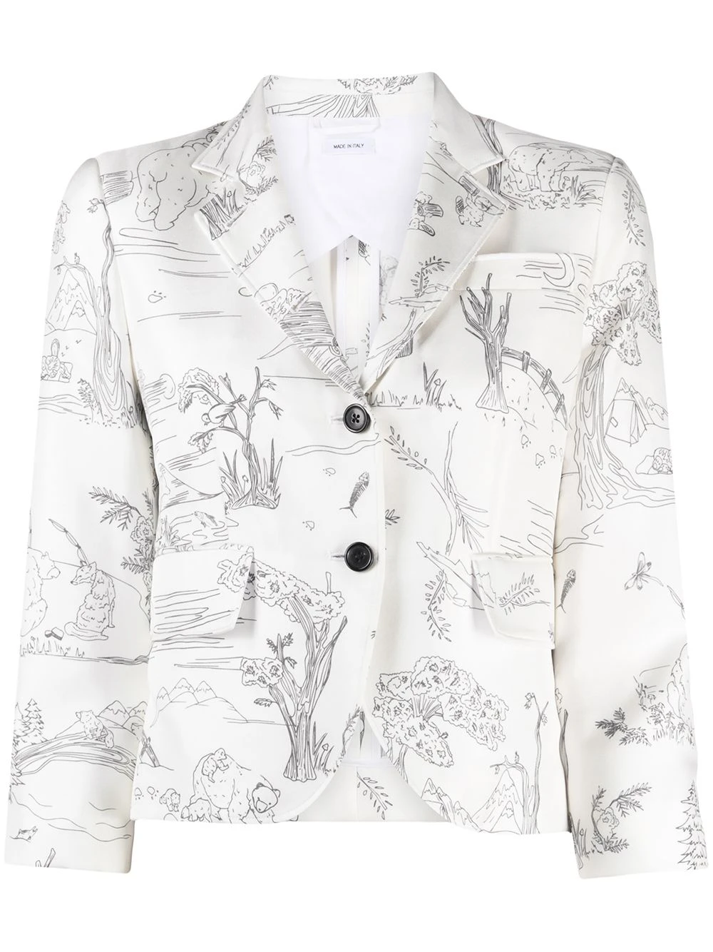 The expression ‘cherry on top’ commonly means that something special is added to something else that’s also very nice to make it just that much more enriched. That’s what will happen to your outfit today once you throw on this mix-print silk blazer from Thom Browne before leaving the house. Right on point.