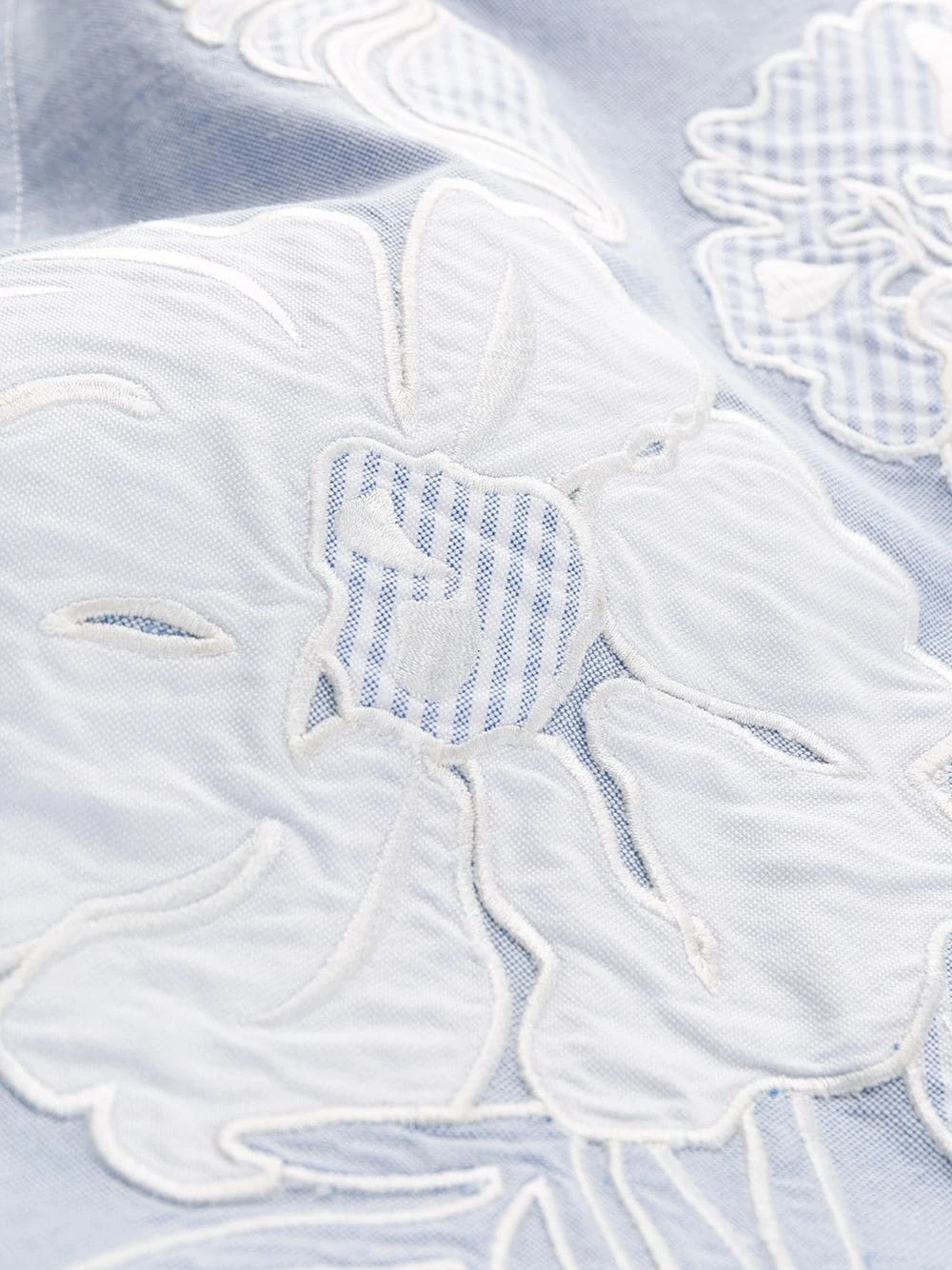 Thom Browne produces new takes on men’s fashion with creative prints and cuts. This light blue ocean floor appliqué shirt from Thom Browne features a classic collar, a front button fastening, short sleeves and a relaxed fit.