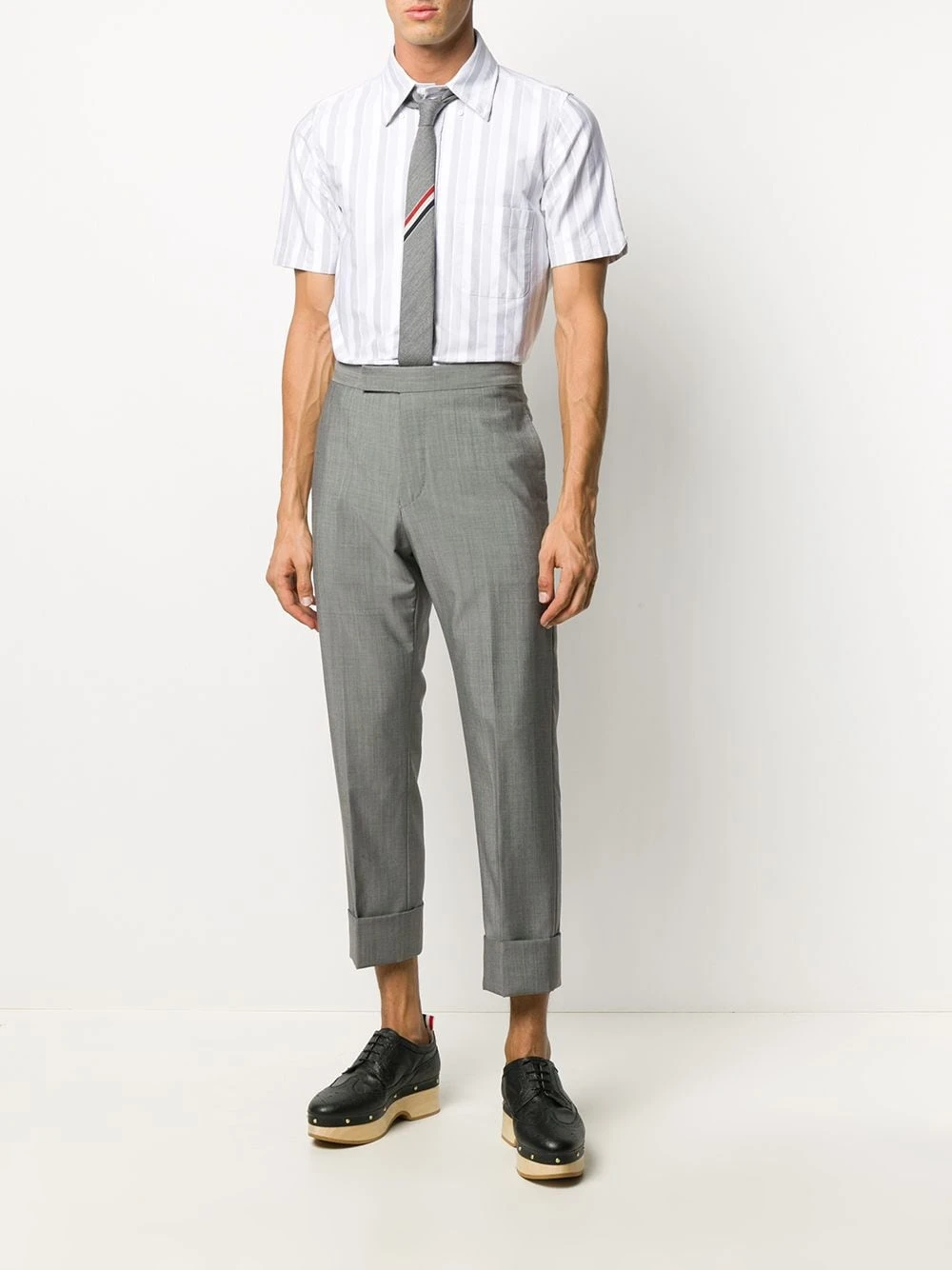 Master the tonal trend, even with your workwear. Thom Browne plays with shadows in this oxford stripe short-sleeve shirt. But you’ll bring it to light because it’s one you’ll always want to wear.Β