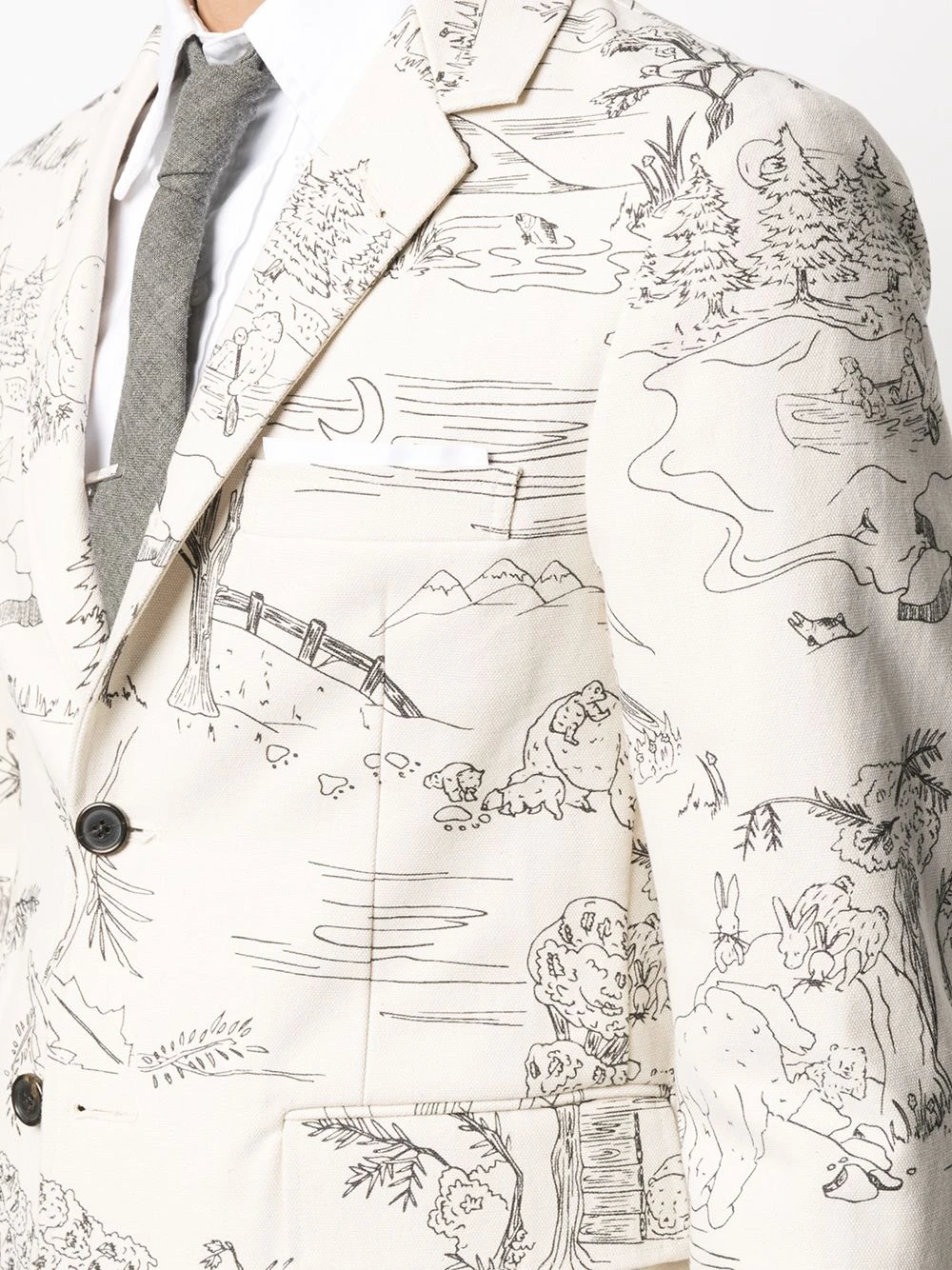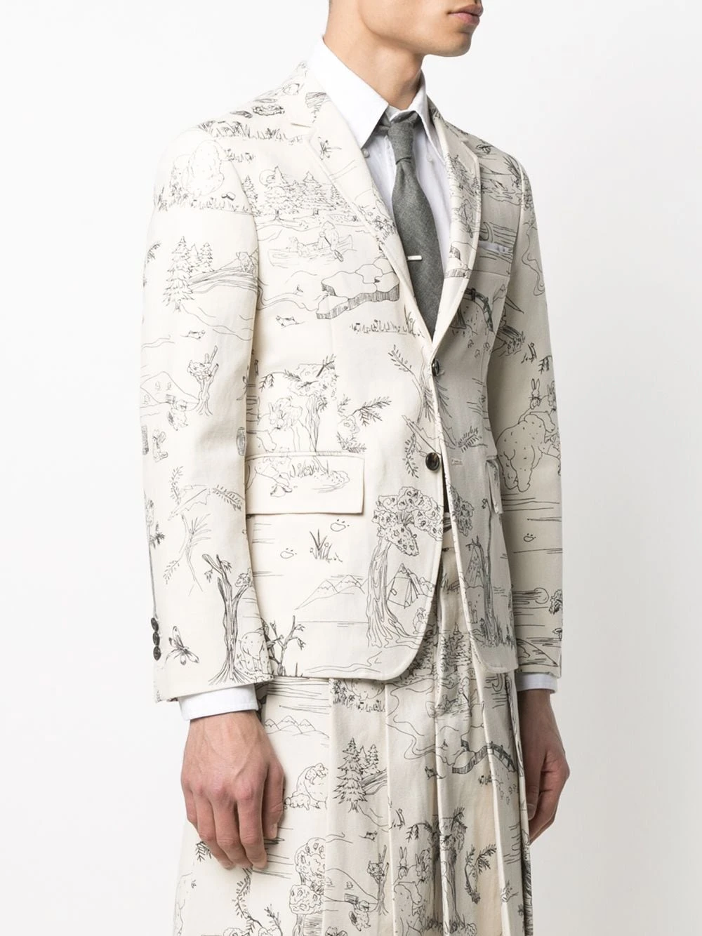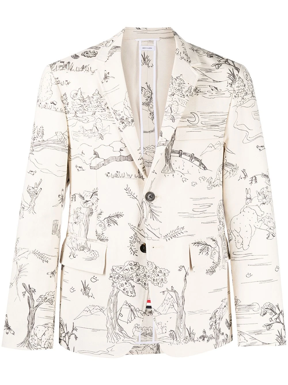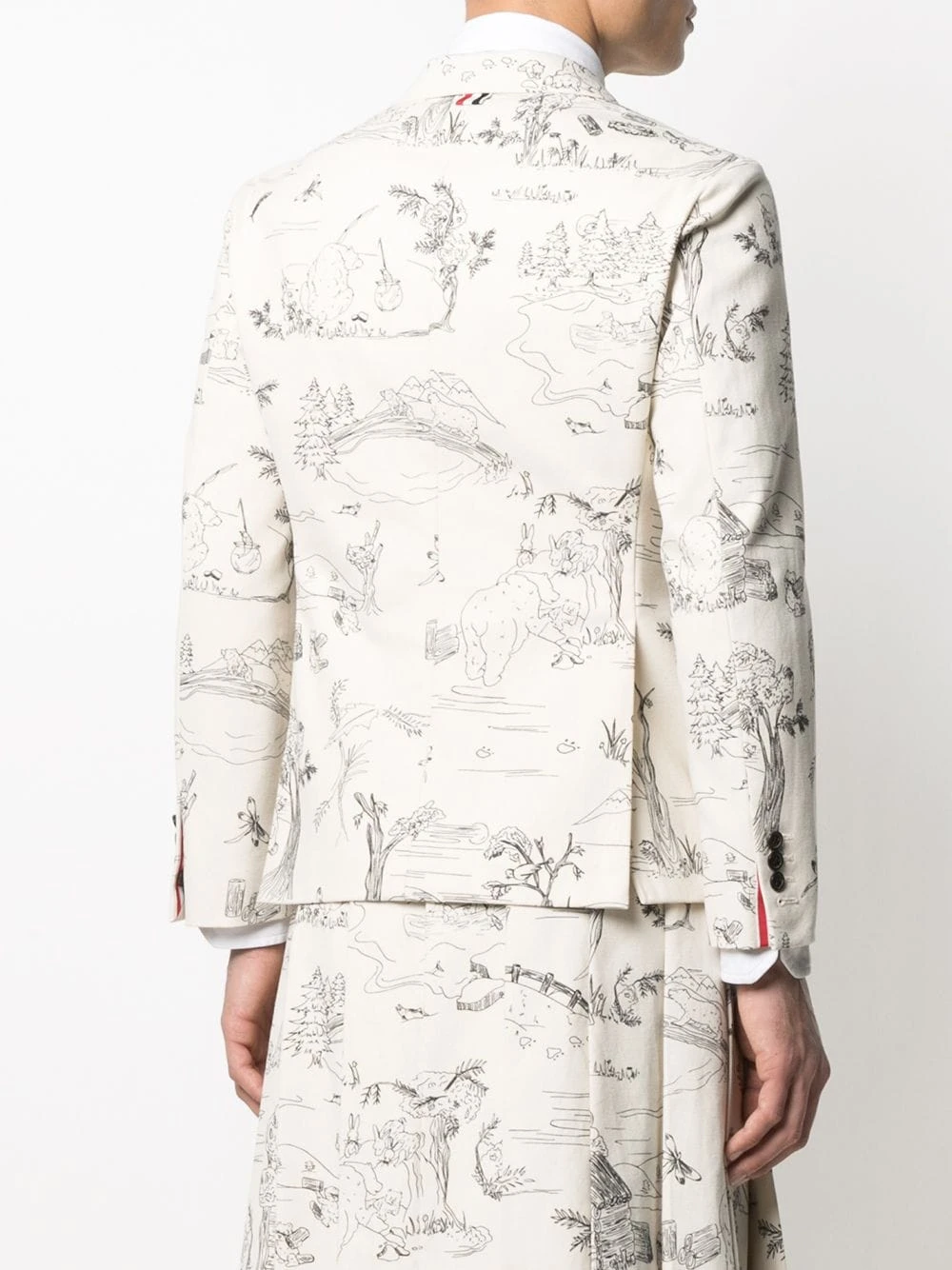All great fashion begins with a sketch. And this great blazer jacket from Thom Browne ends with one too; in a sketch print design and single-breasted front fastening, this piece possesses an artistic feel like no other. A blazer like never before.