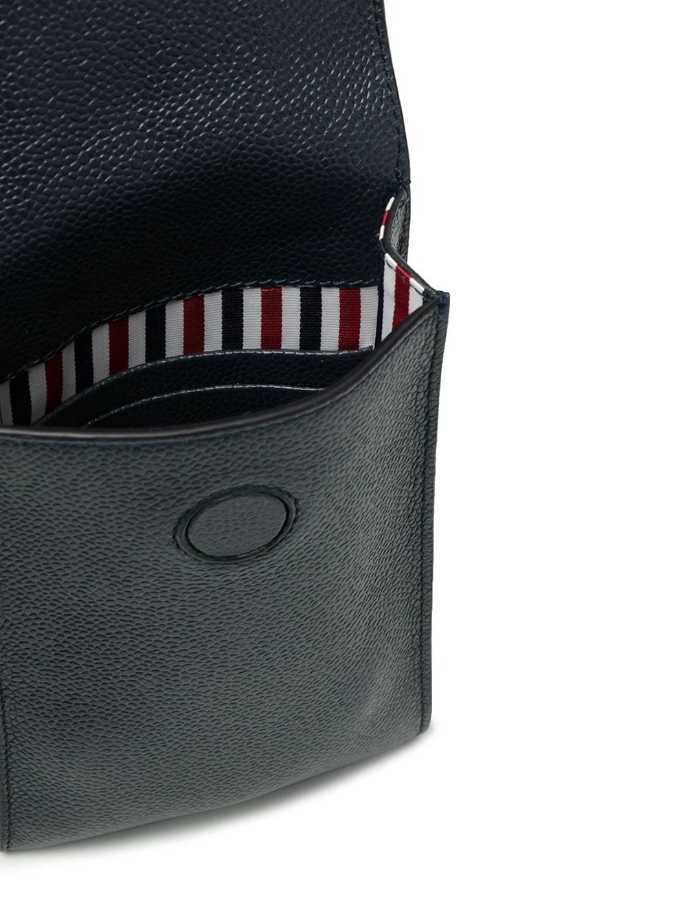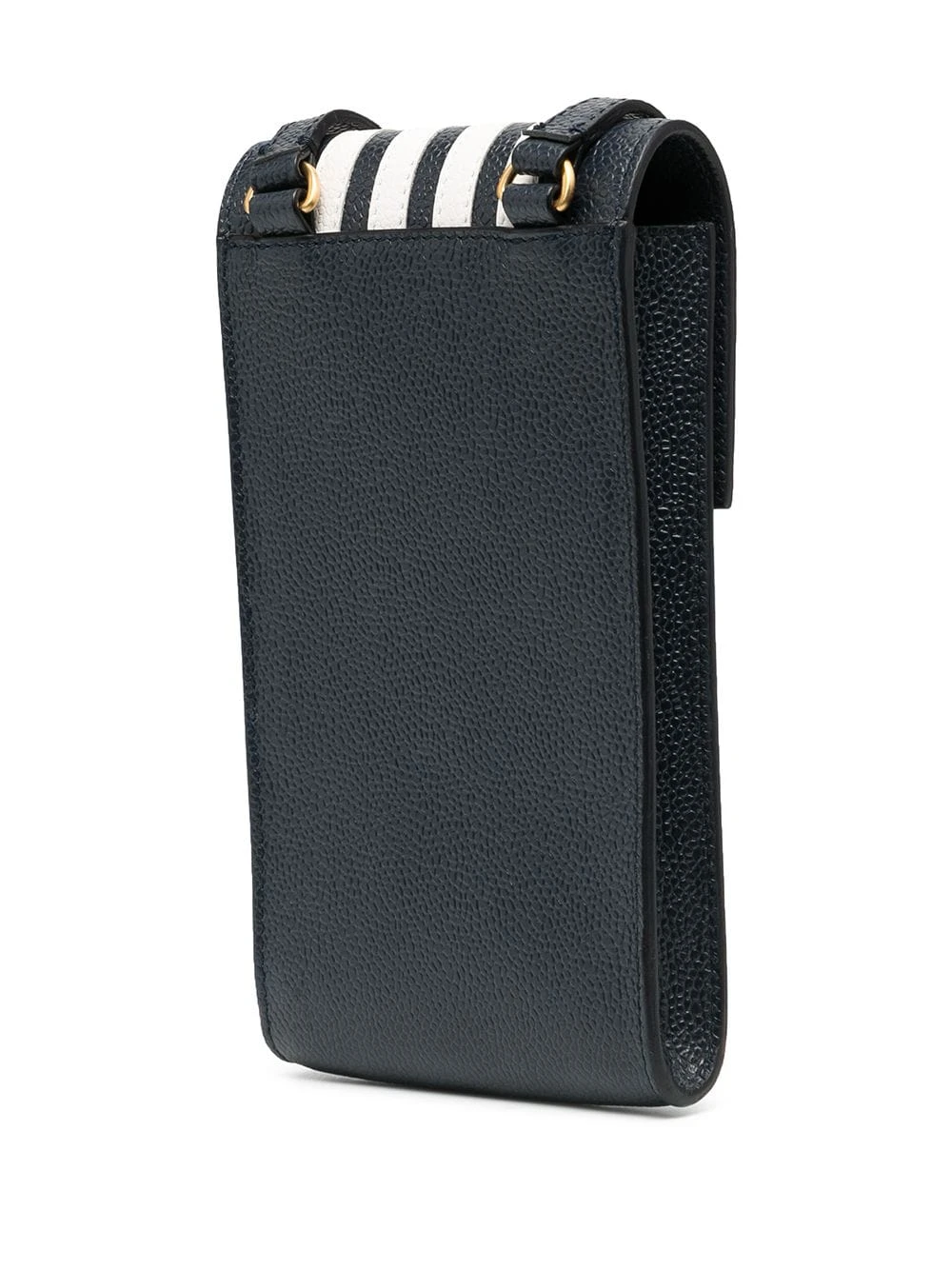 Your phone is an extension of yourself (and your arm). Make sure it looks almost as good as you in this 4-bar flap phone holder. Incoming call from Thom Browne. Featuring an adjustable shoulder strap, a foldover top with magnetic closure, gold-tone hardware, a signature 4-bar motif and a signature RWB tab.