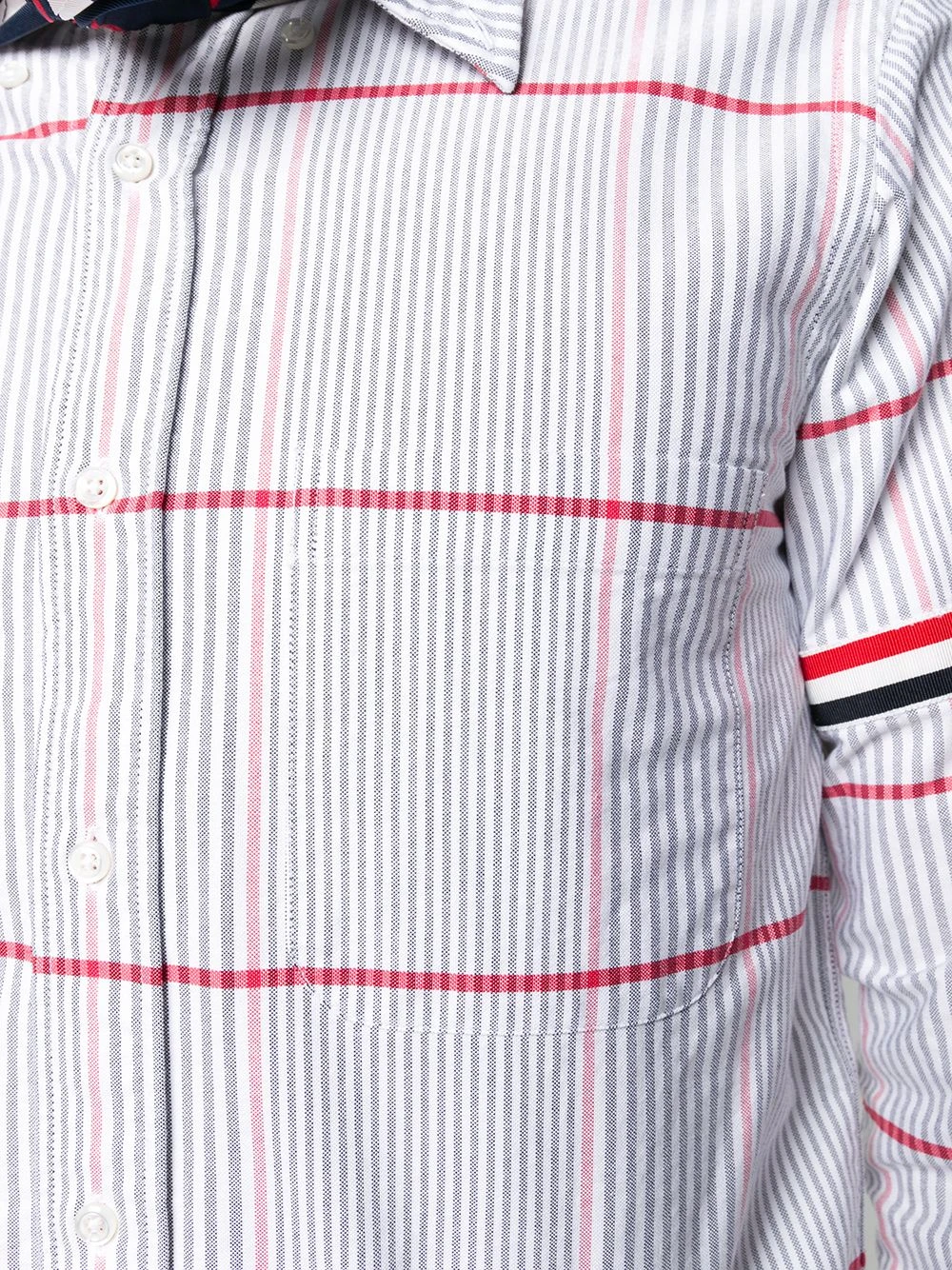No one does preppy tailoring like Thom Browne. This oversized check oxford shirt showcases the brands signature motifs. With red, white and blue stripes and a check print, it’s the quintessential Thom Brown piece. Featuring a check print, a classic collar, a curved hem, a button fastening, RWB stripe and a signature logo patch.