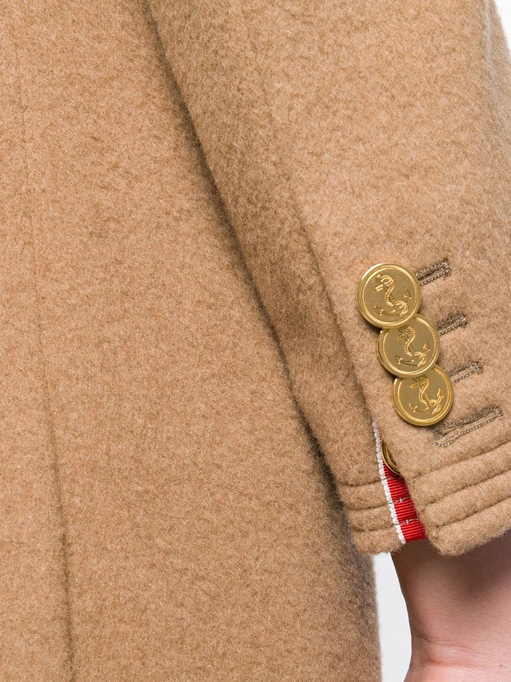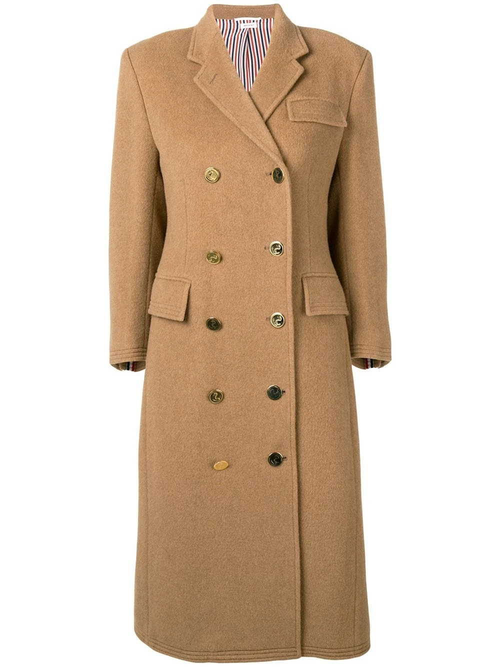 No wardrobe is complete without a classic camel coat. Yours isn’t complete without this double-breasted camel coat from Thom Browne. Don’t let your outerwear be an afterthought.