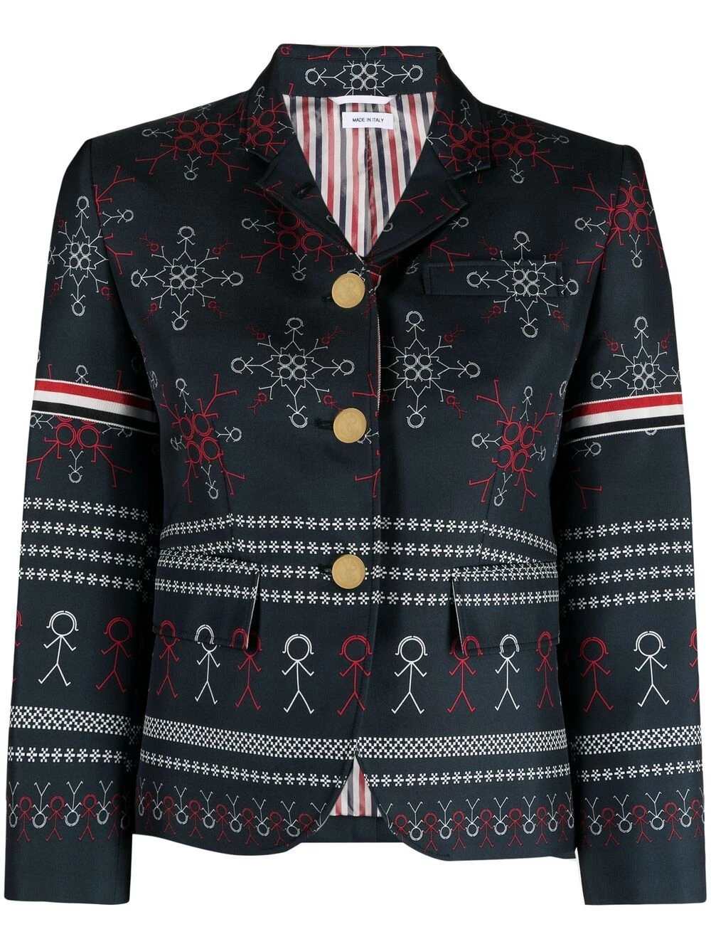 Thinking about tailoring your wardrobe in a different direction? Smarten up and exude confidence in this Thom Browne falling snowflake sports blazer that boasts a bold design that people are bound to take notice of. Suit up.