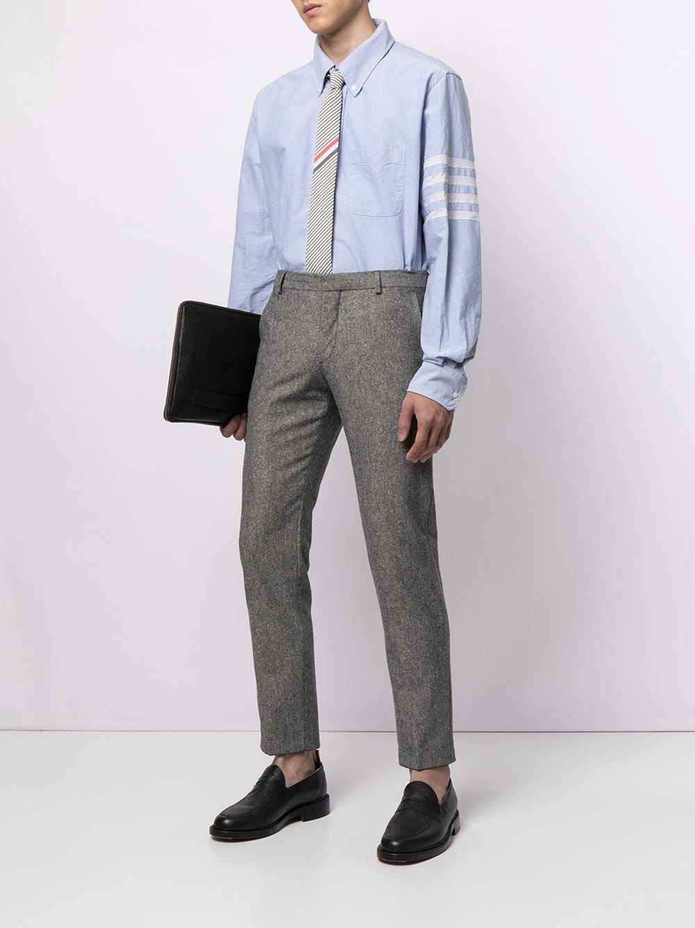 You know youβre hard to please, and so does Thom Browne. With a timeless design and a four-stripe detail, this button-down shirt is prepared to meet your high standards. Never settle for less than you deserve.