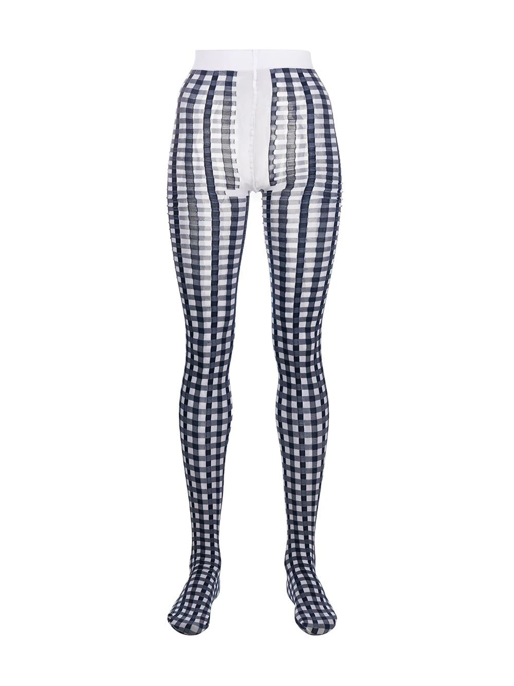 Proclaim your love for check patterns out loud β or let these check tights from Thom Browne do all the work for you instead. Boasting a blue-tone check pattern, these 50-denier tights will make a solid addition to your sock drawer. Check it out.
