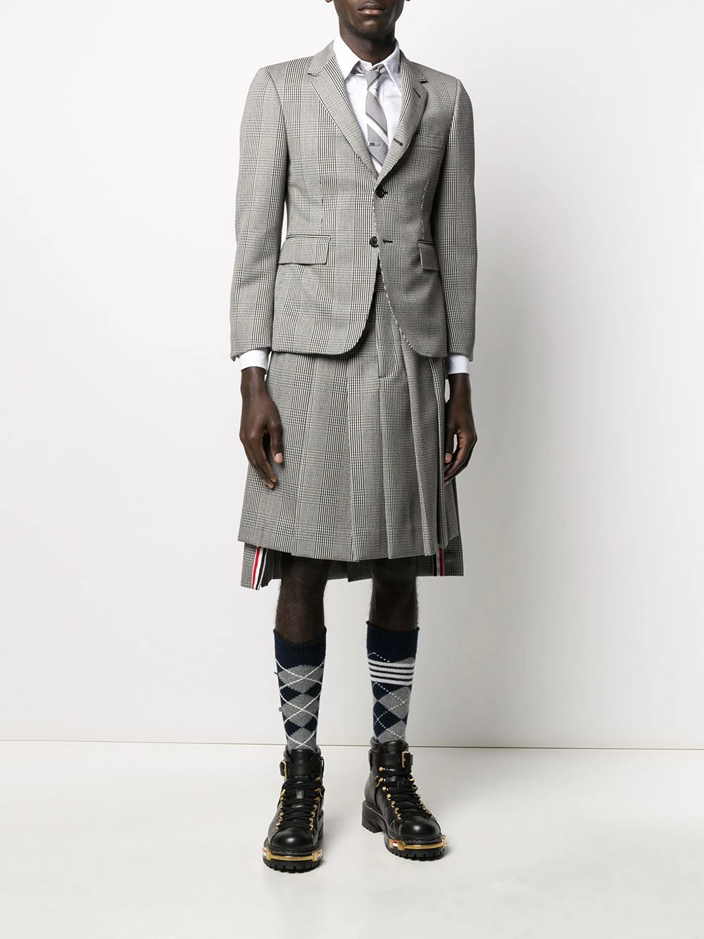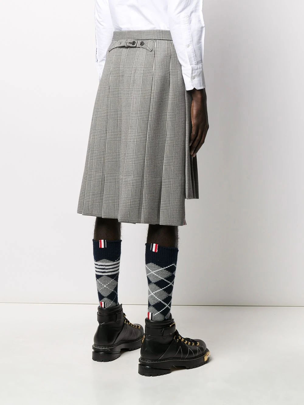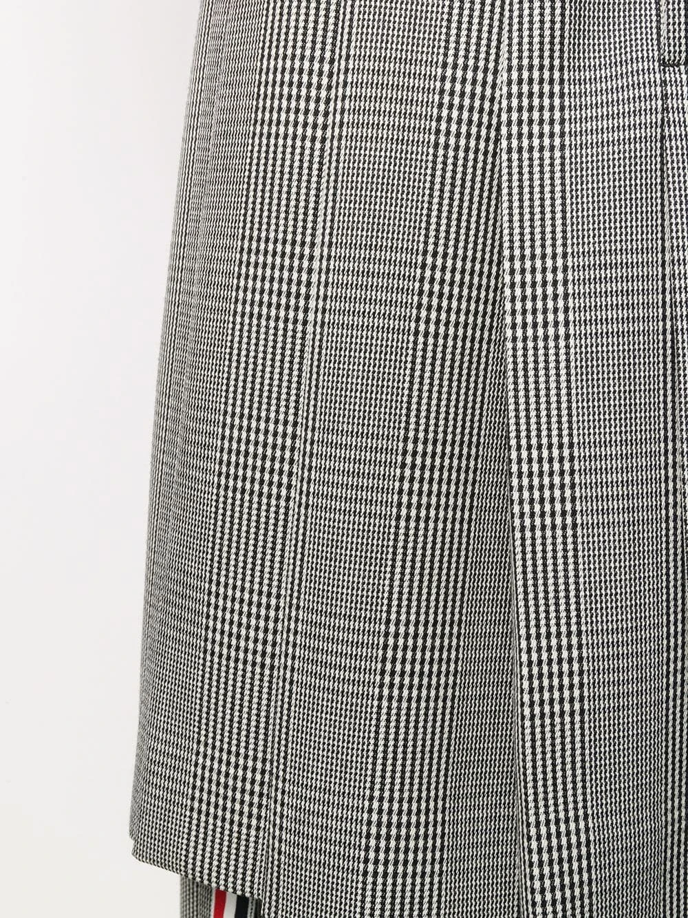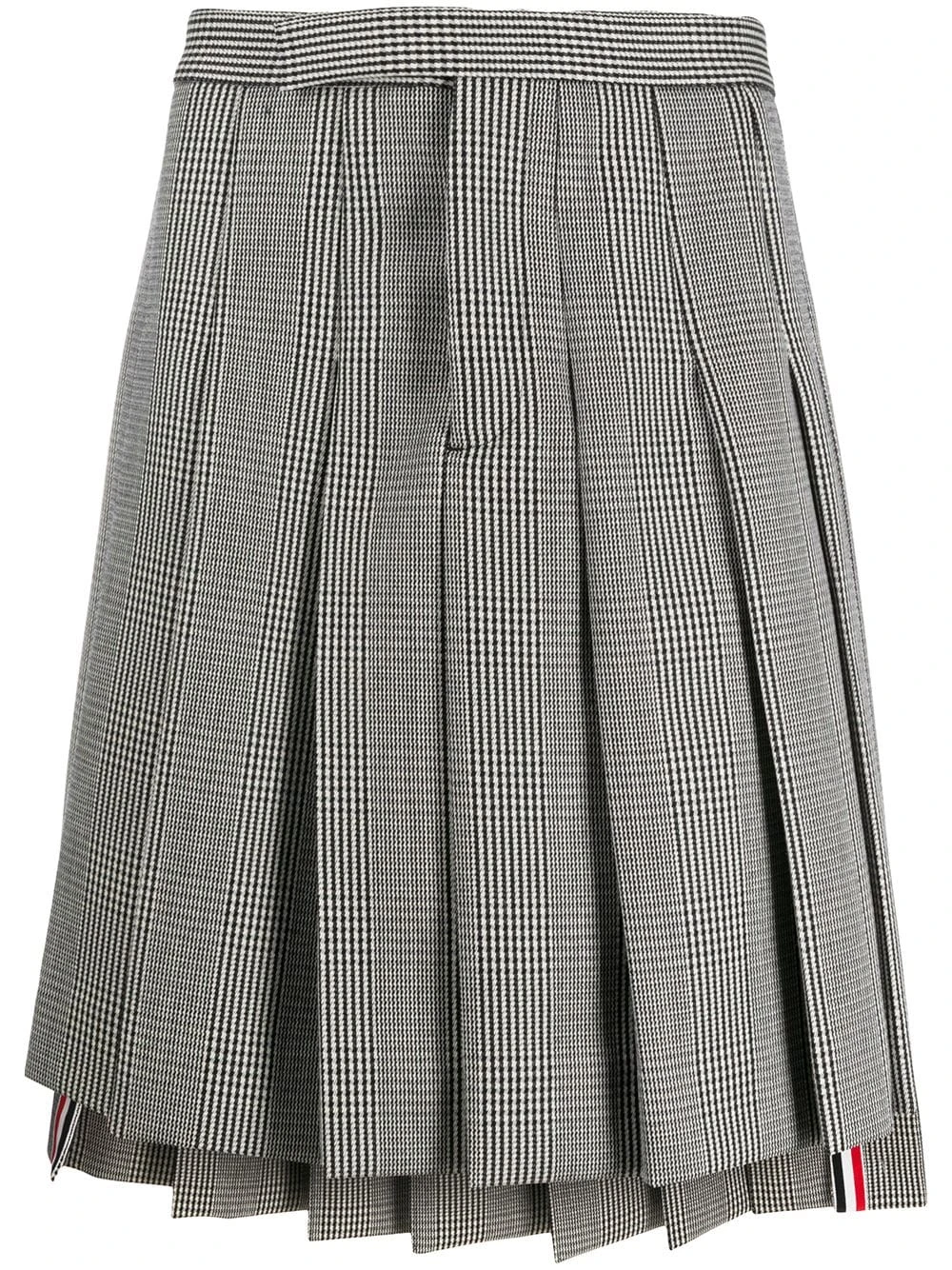 Why wear trousers when you can wear this skirt? Crafted from black and white wool, this knee-length pleated skirt from Thom Browne showcases a cavalry twill design. Dare to rock it. Featuring a concealed fastening, a pleated design, a high low hem and a signature striped detail.