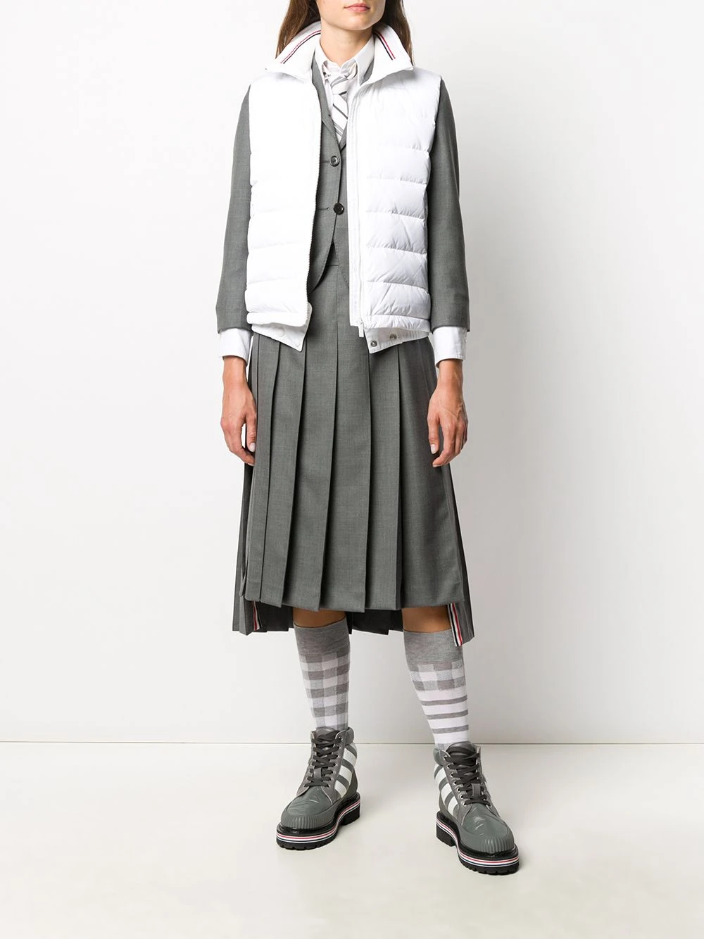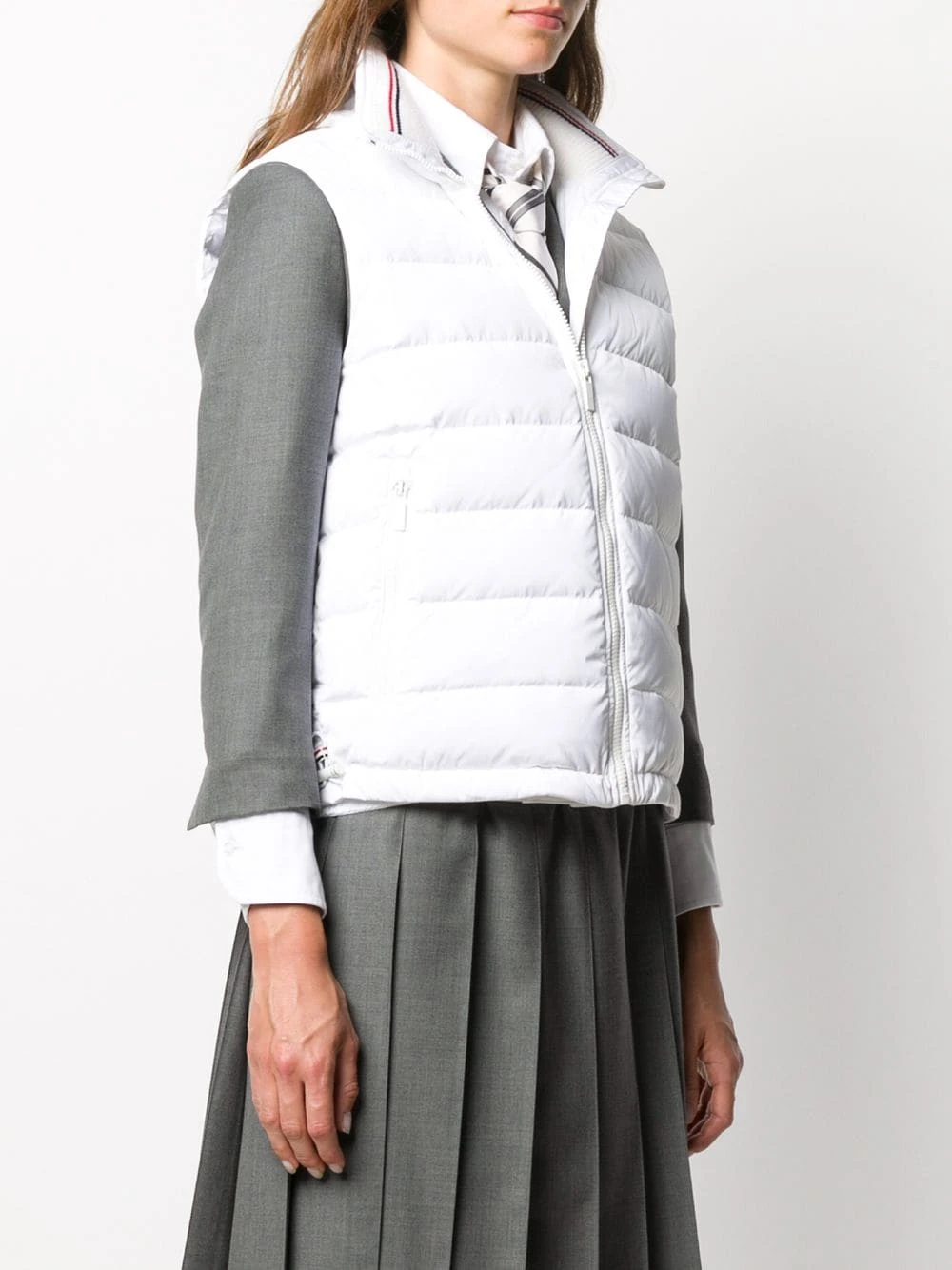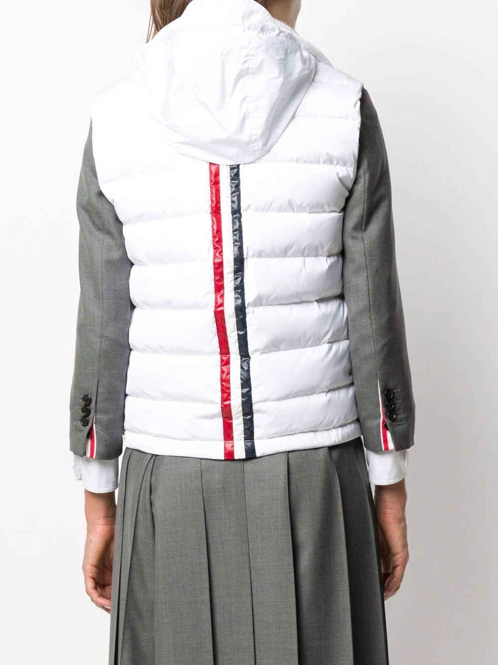 Whether dressing for the streets or the slopes, luxe label Thom Browne has got you covered presenting a wide range of clothing, shoes and accessories designed to keep you snug whatever the occasion. Crafted feather down, this gilet from Thom Browne features a sleeveless, padded design, quilted finish, signature three-stripe logo, detachable hood and down-feather filling.