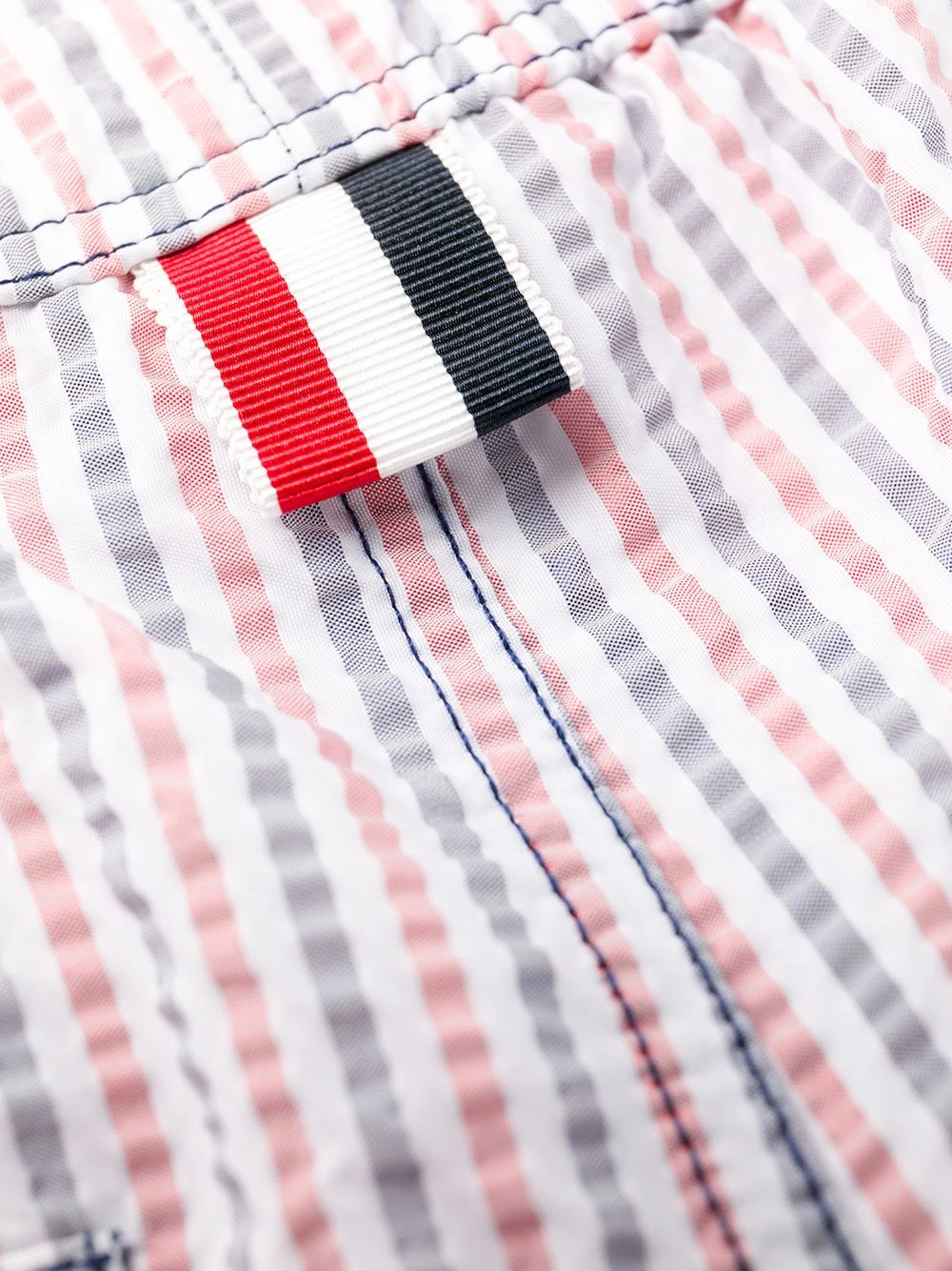 Holiday style? Thom Browne has got it covered. Introducing these RWB-stripe swim shorts.