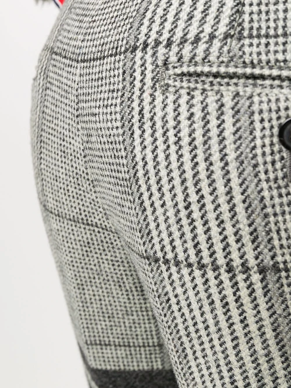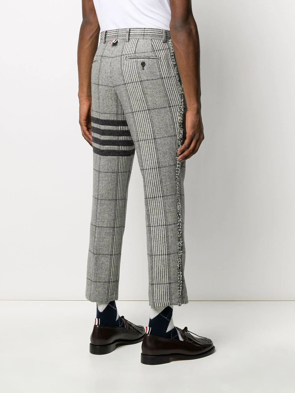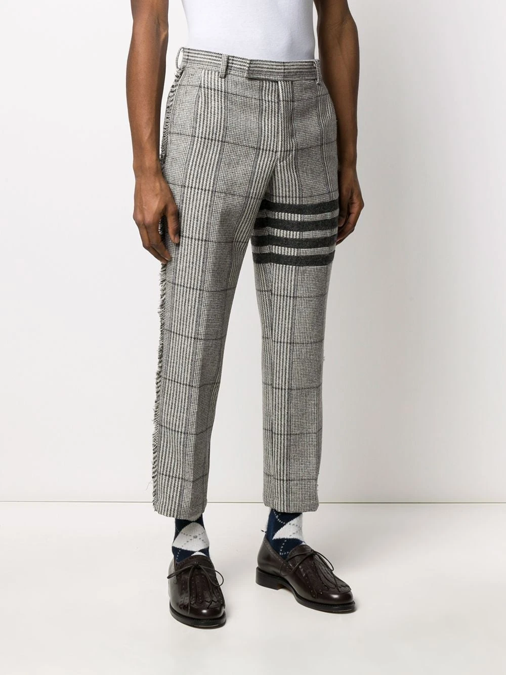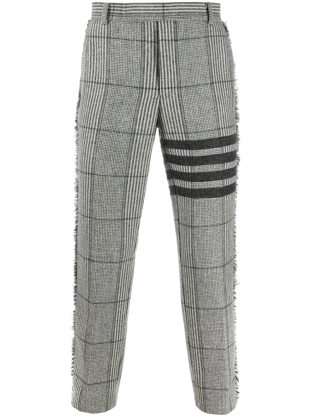 There’re some pieces that can transform our look into a winner. Boasting a wool construction, these 4-Bar Prince of Whales check frayed chinos from Thom Browne are without a doubt a successful choice. Checkmate. Featuring belt loops, a concealed front fastening, frayed edges, a straight leg, a cropped length, a check pattern and a 4-bar stripe detail.