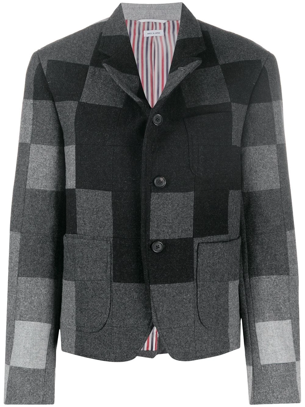 Thom Browne Shetland wool patchwork-effect shrunken blazer