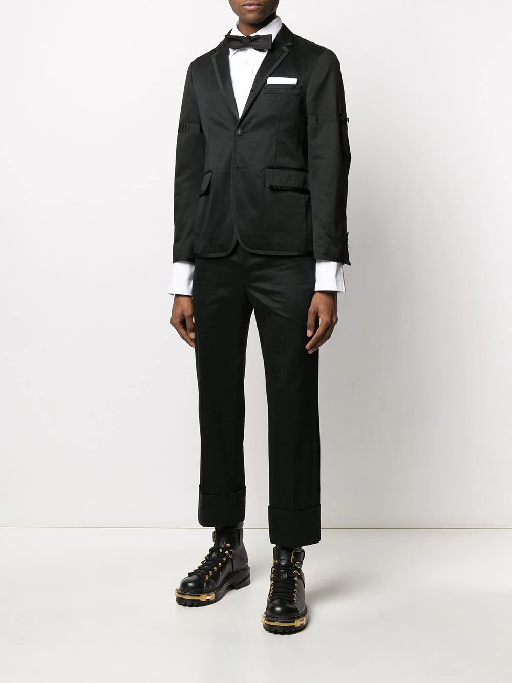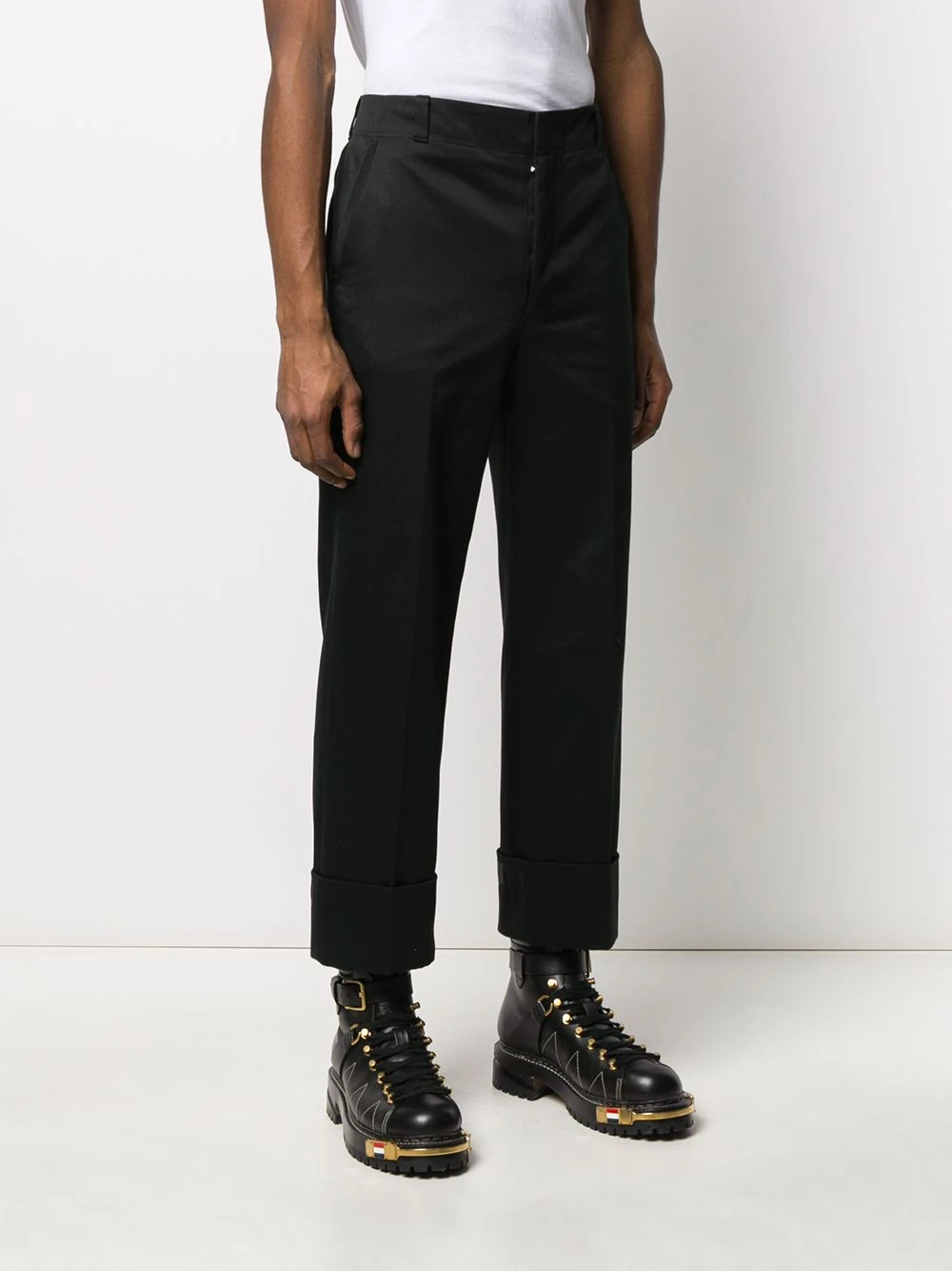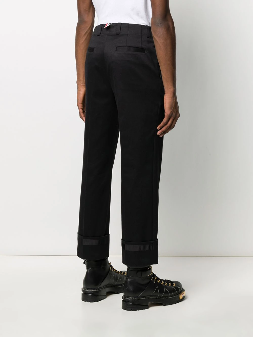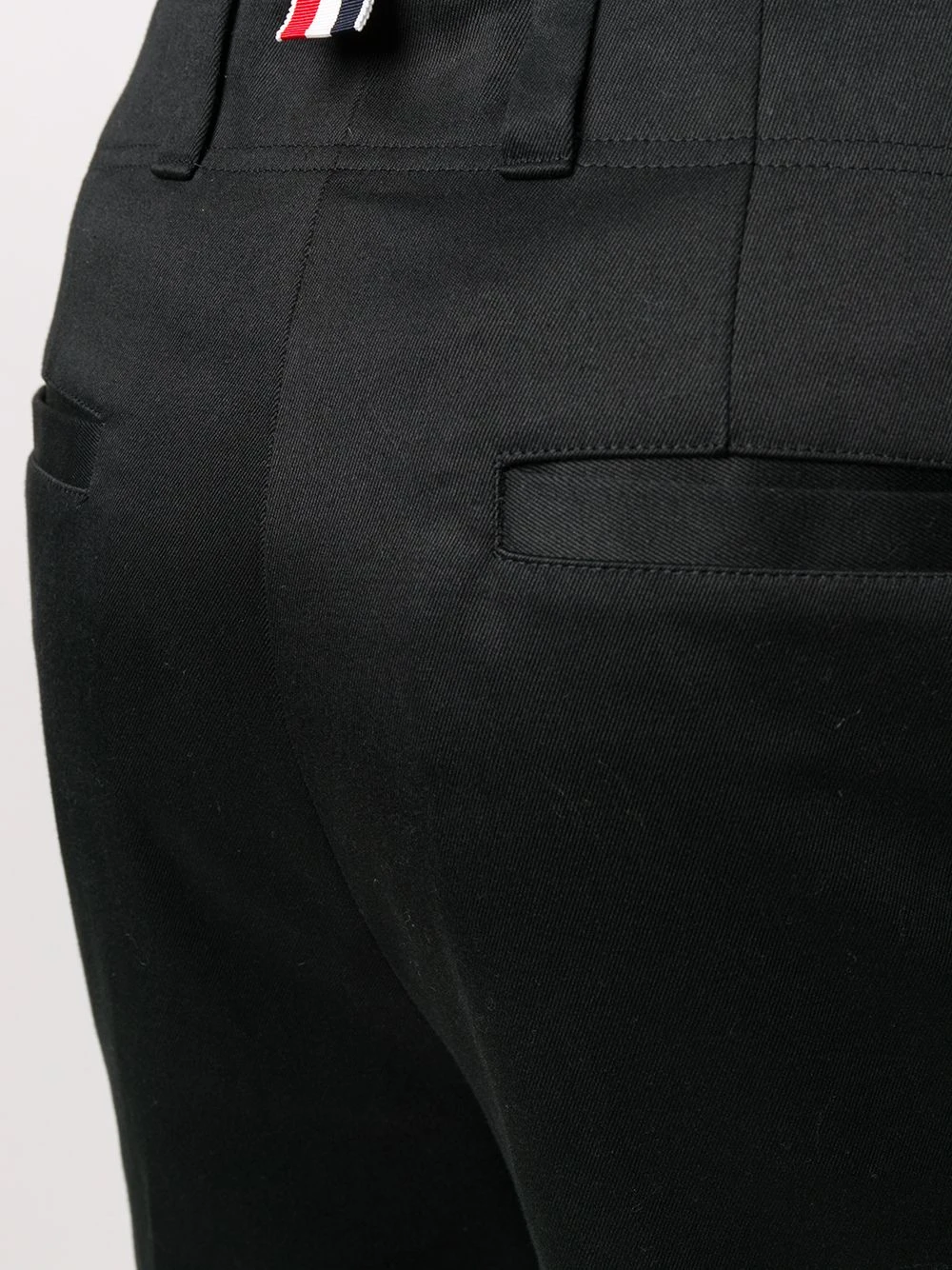 Life is a bit like a chess game. You have to create your own strategy in order to win the (other) king. Get ready for the “checkmate” moment with these black trousers from Thom Browne. Looks like we have a winner. Featuring a concealed fastening, belt loops, side pockets, rear welt pockets and a branded rear patch.