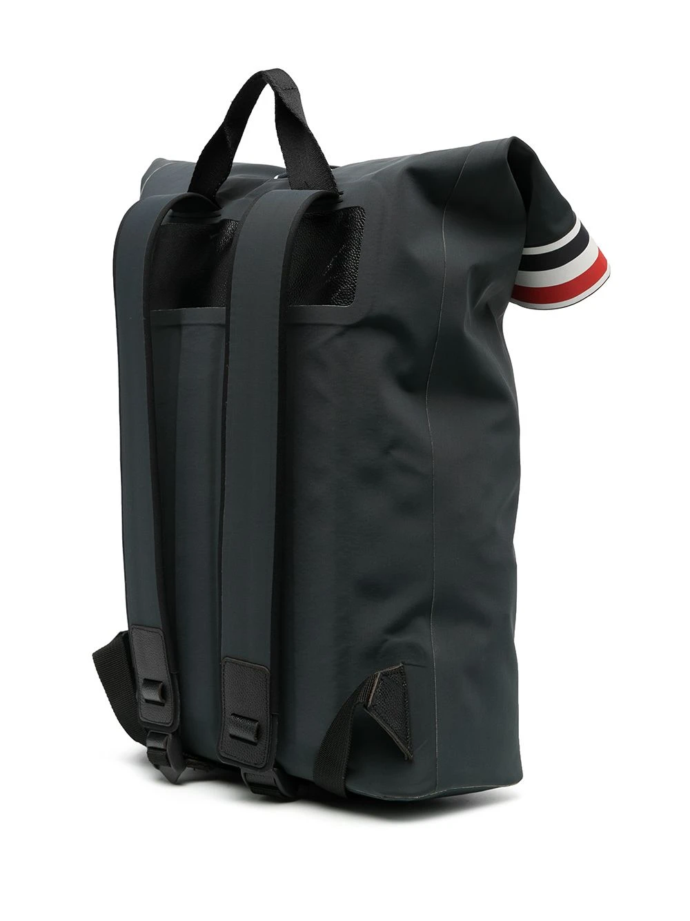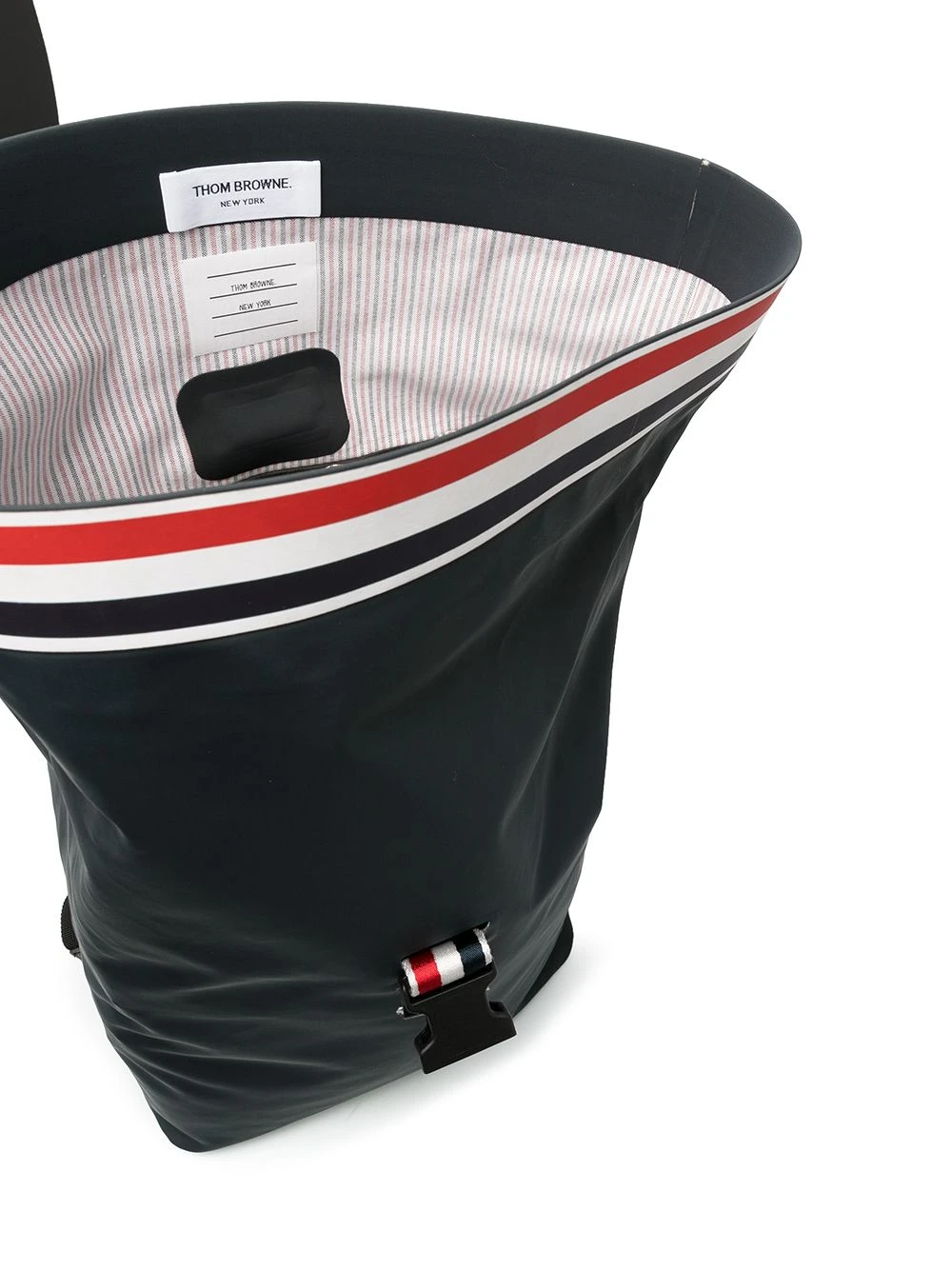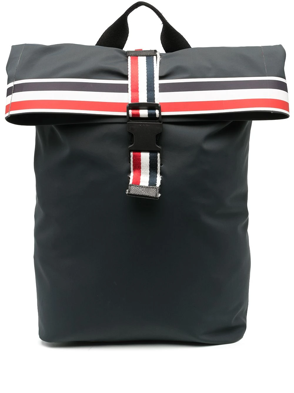 Looking for a backpack that’s slightly different from the others? Try this dark grey backpack from Thom Browne. The welded foldover top and RWB stripes will make sure you are noticed. Don’t be shy. Featuring a foldover top, a buckle fastening, a main internal compartment, a top handle, adjustable shoulder straps, a leather trim and signature RWB stripes.