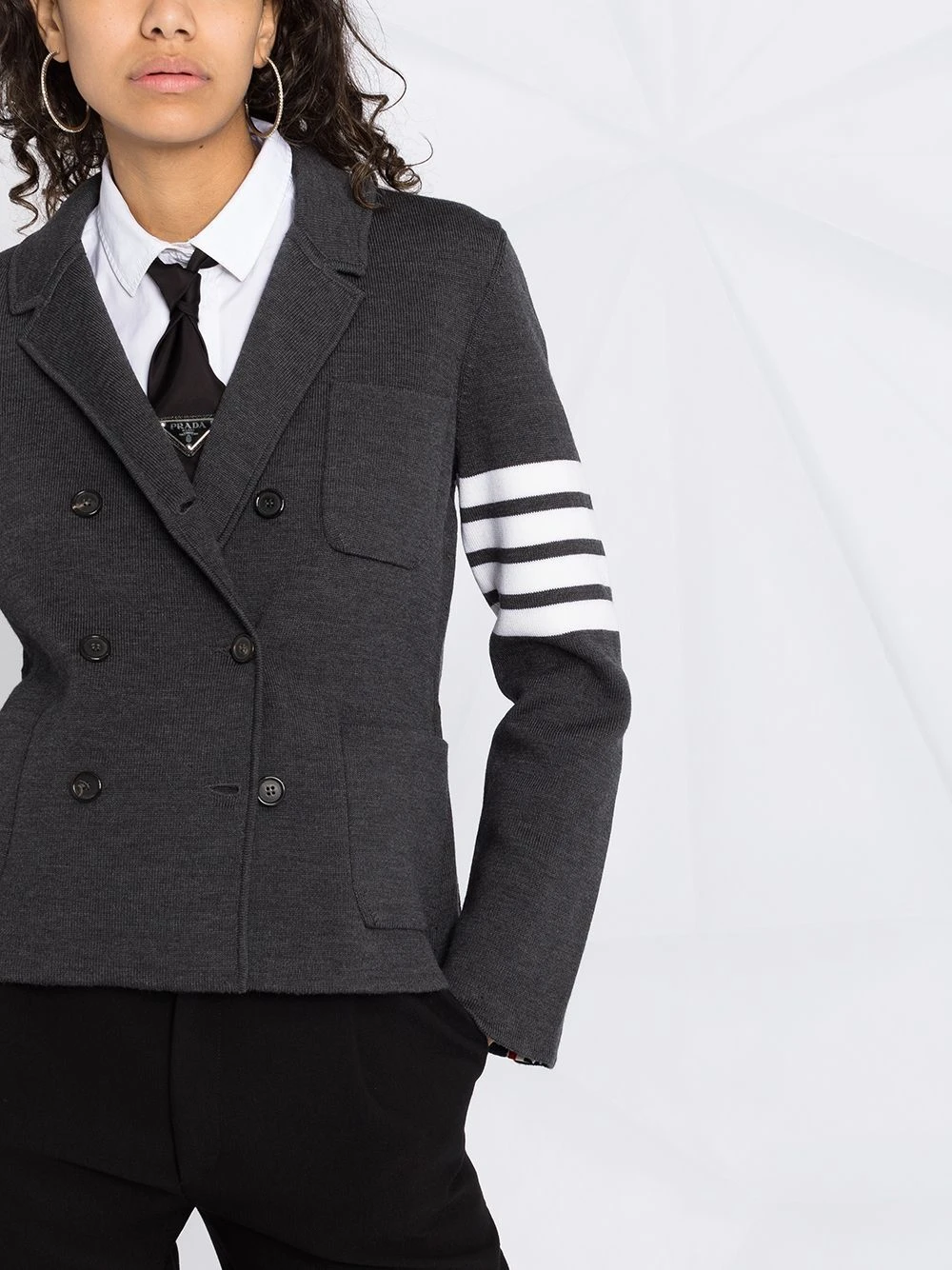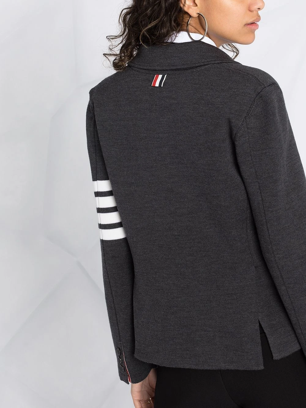 Known for its original take on classic silhouettes, Thom Browne uses high-quality materials to create perfectly crafted pieces with eye-catching details. This knitted jacket is woven from wool and embellished with a 4-Bar strap at the sleeve and a signature RWB tab at the back. It features a double-breasted fastening and a notched collar, adding structure and a tailored look to this casual interpretation of the blazer.