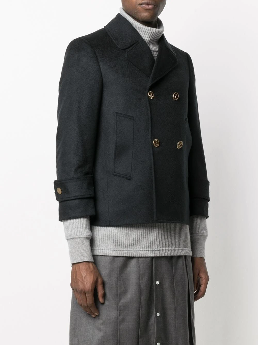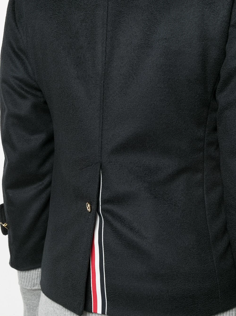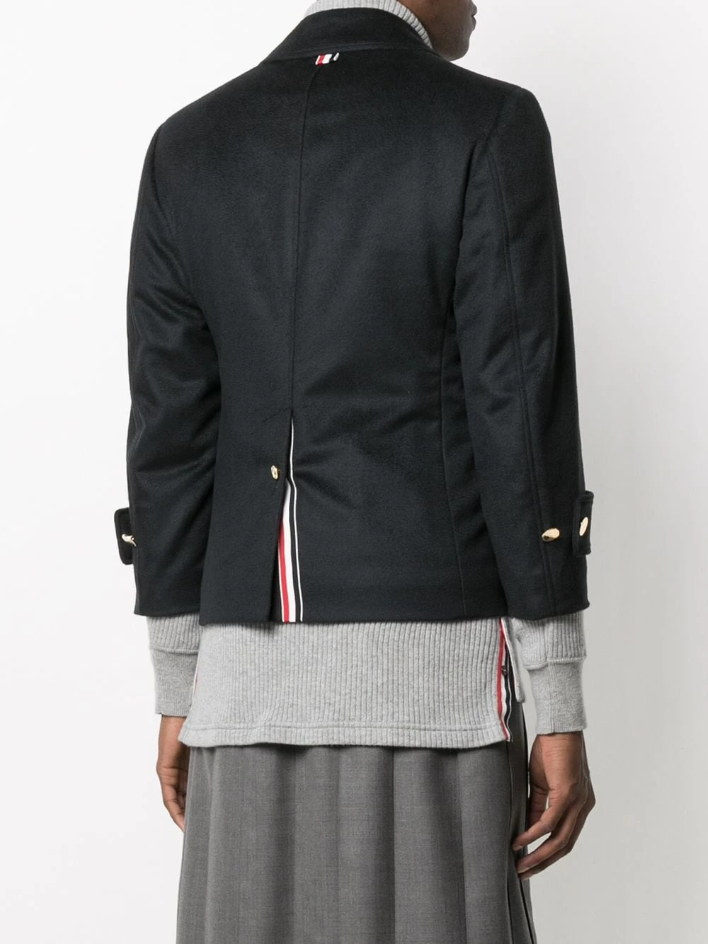 Uncomfortable officewear is a thing of the past. In a delicate cashmere composition, this Thom Browne blazer has the ability to keep you cosy while maintaining a polished aesthetic. Winning combo.