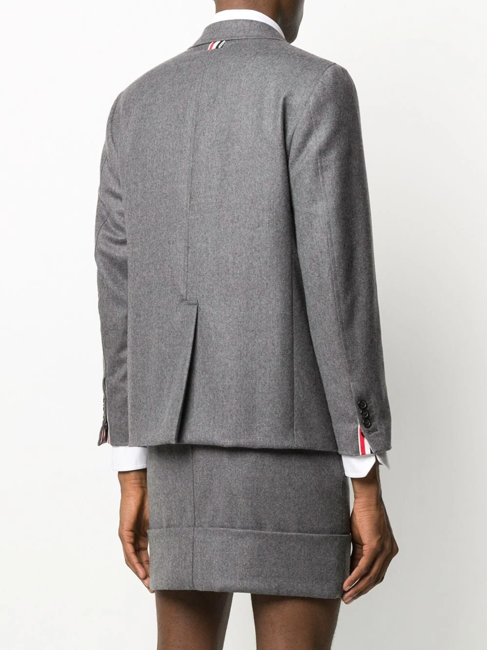 Sleek tailoring doesn’t need to be boring and Thom Browne knows how to do it like no one else! Crafted from soft wool, this double-breasted flannel sack jacket will pass the test of time. Timeless is key! Featuring a double breasted front fastening, a chest pocket, long sleeves, a double breasted front fastening, two front pockets and a rear central vent.