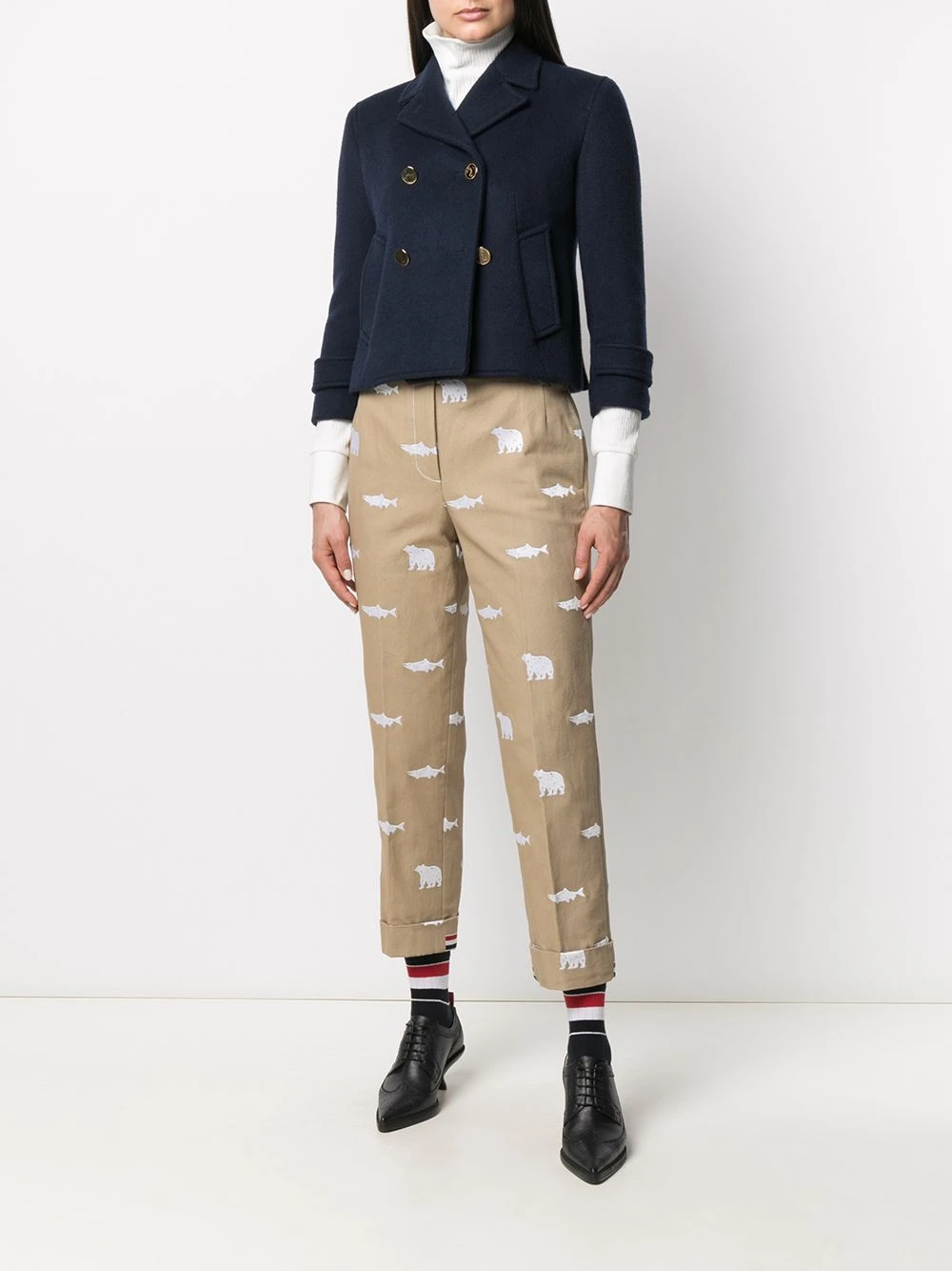 Button up in your new favourite blazer. It’s Thom Browne, of course. With impeccibly tailored notched lapel and side slit pocket details, you’ll be overlaying your outfits in ultimate opulence.Β