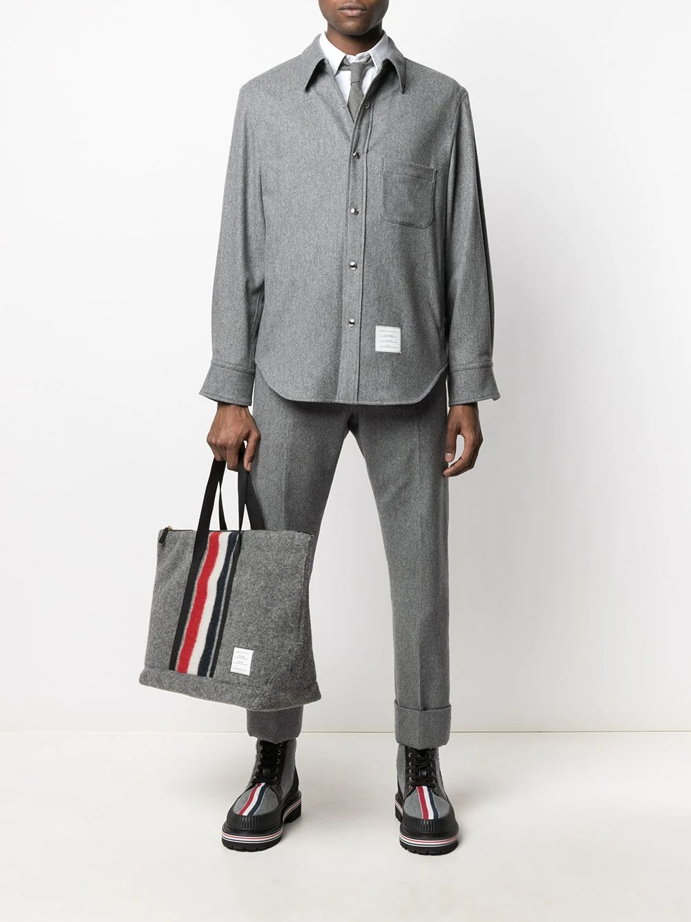 Dress-down Friday in the office? No more baggy hoodies, this smart-casual cashmere overshirt by Thom Browne guarantees you still mean business. The perfect balance.