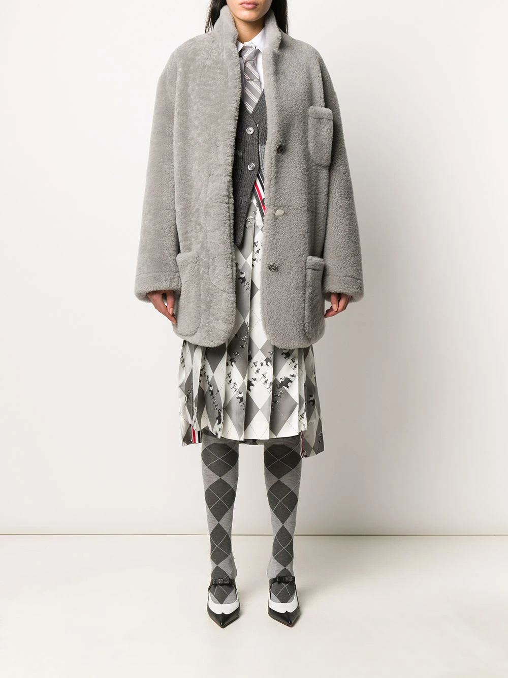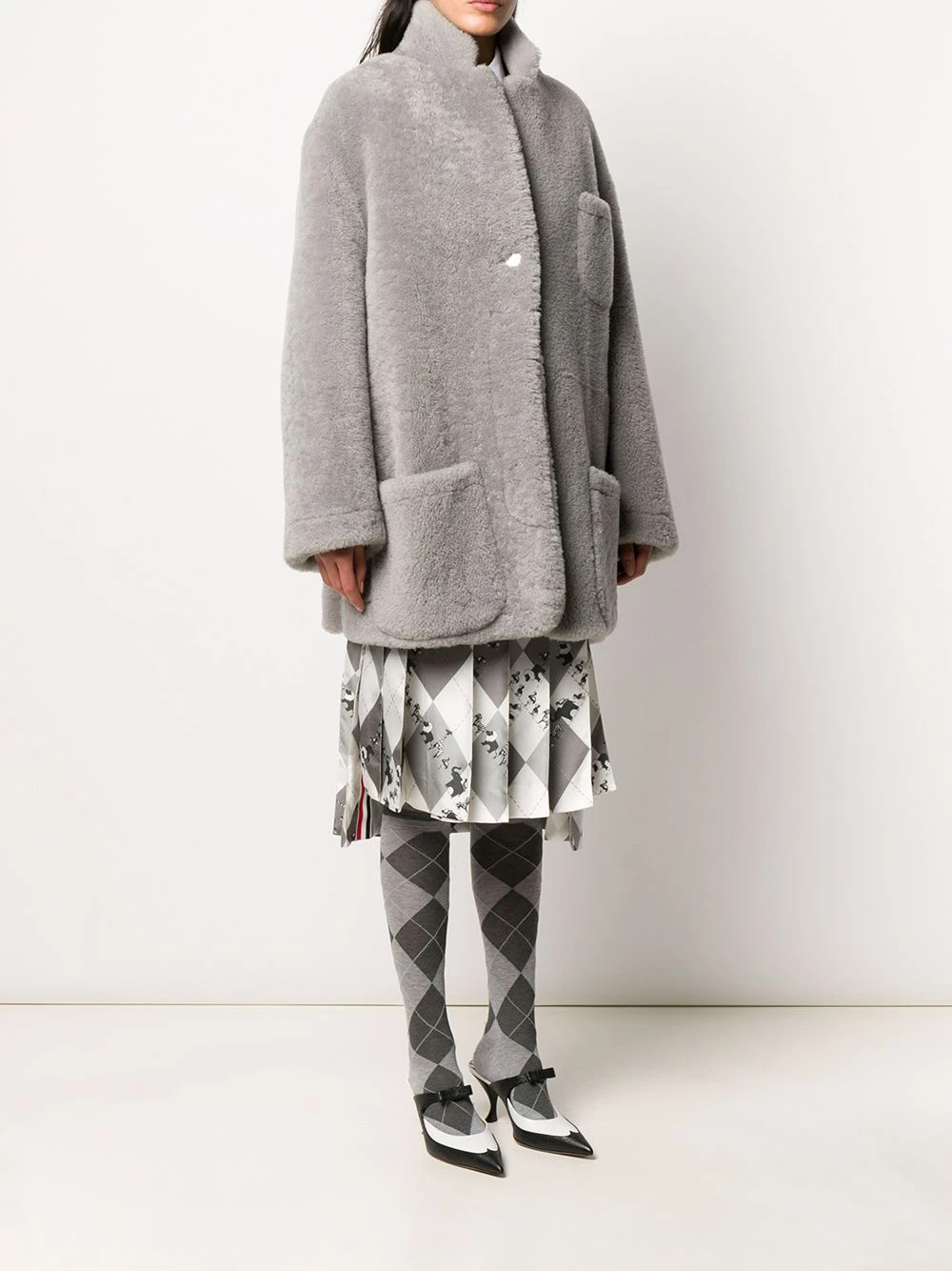There’s no better cure for the cold than a cosy shearling coat. This medium grey Thom Browne one comes in an oversized style so you can have fun with your layering. Totally worth it. Featuring an oversized fit, notched lapels, a concealed front fastening, dropped shoulders, long sleeves, a chest pocket, two front pockets and a straight hem.