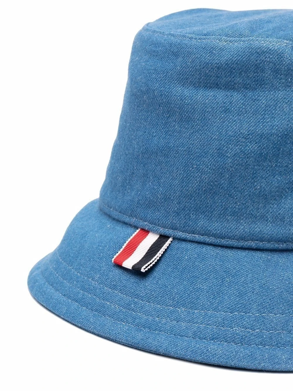 An iconic symbol of the Thom Browne house, the 4-Bar Stripe is seen in every collection. For AW21, itβs presented on this denim-effect bucket hat.