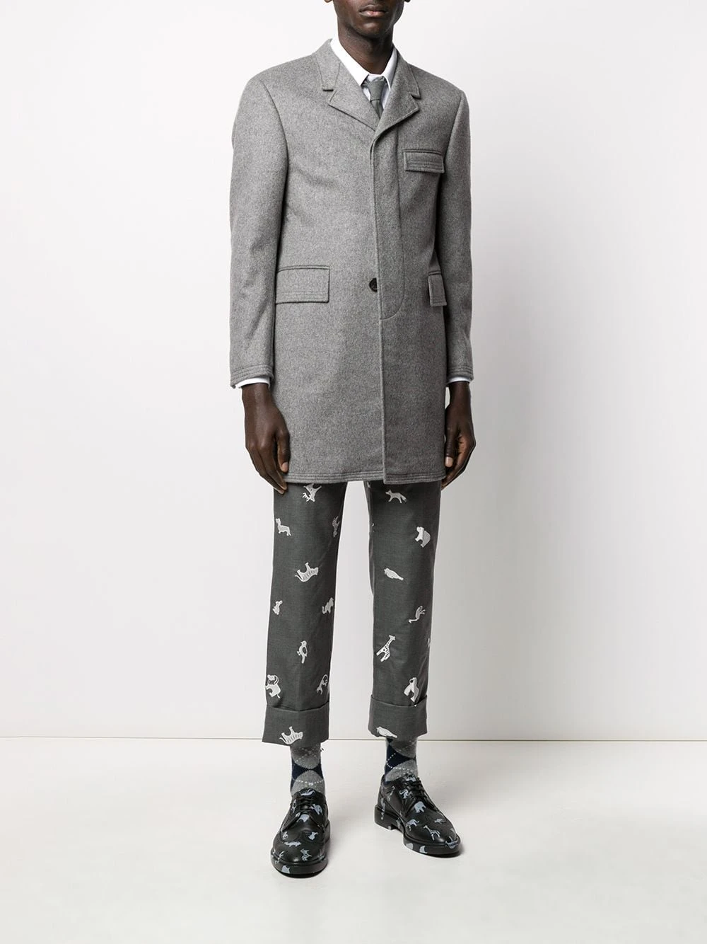 A good wardrobe is built from classics. And yours isn’t complete until you add this heavyweight cashmere Chesterfield overcoat from Thom Browne. Its minimal design will ensure that it transcends passing trends – so it will remain in your possession for years to come. Featuring front flap pockets, a concealed fastening, notched lapels, cropped sleeves and a mid-length.