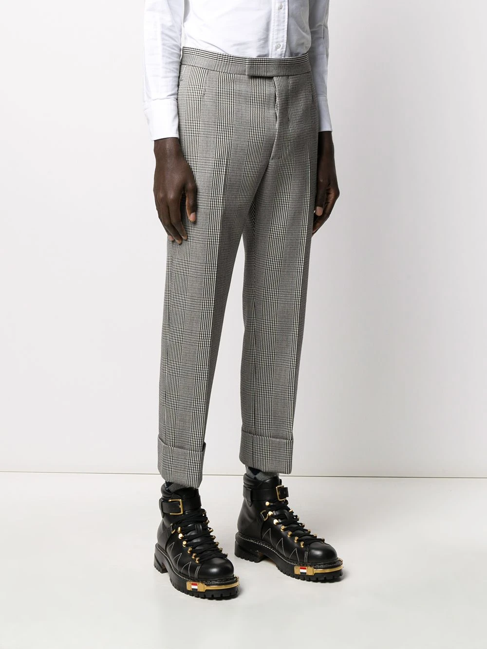 Life is a bit like a chess game. You have to create your own strategy in order to win the (other) king. Get ready for the “checkmate” moment with these black and white cavalry twill trousers from Thom Browne. Looks like we have a winner. Featuring a concealed front fastening, side pockets, rear welt pockets and a straight fit.