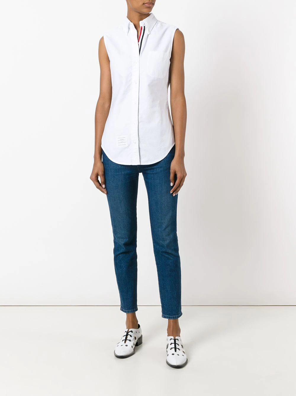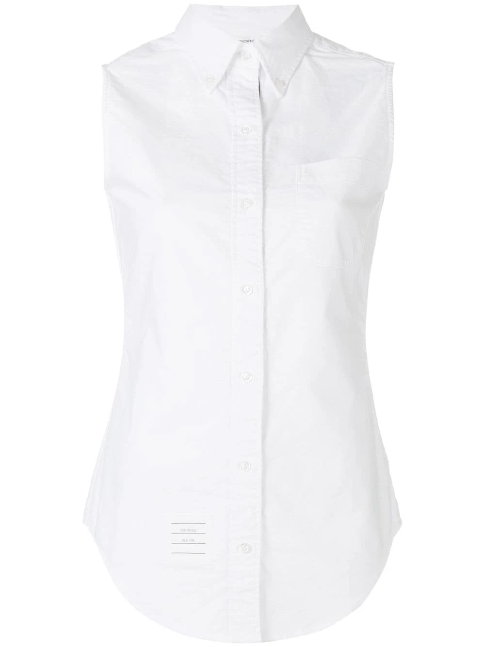 100 WHITE Sleeveless Grosgrain Oxford Shirt from Thom Browne.