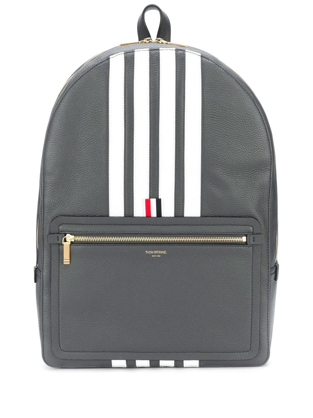 Earn yous stripes with this backpack from Thom Browne. Made from leather, this navy backpack has a structured design, a gold-tone top zip fastening, an internal zipped pocket, a zipped pocket at the back and the brand’s signature three stripe detailing.