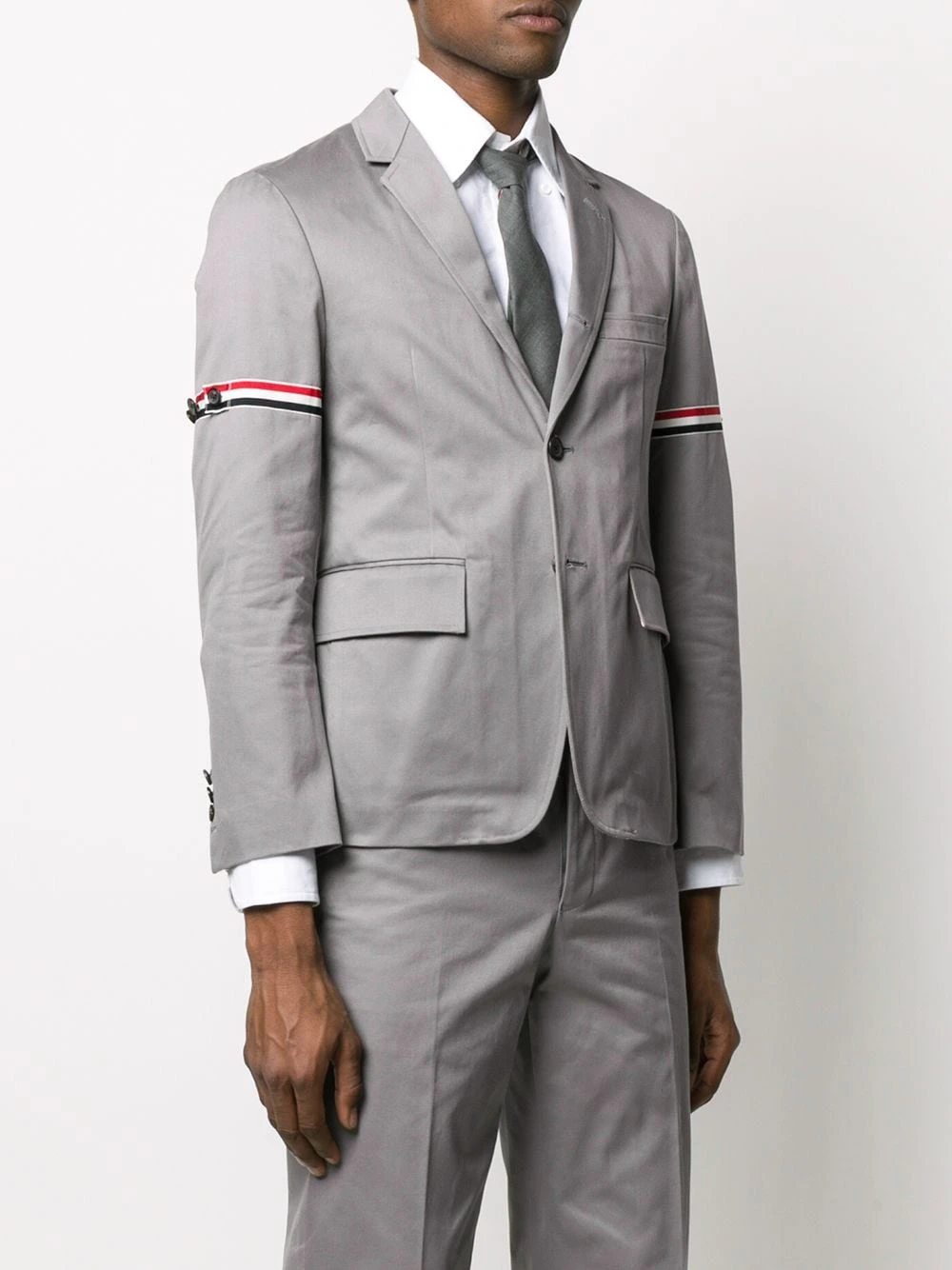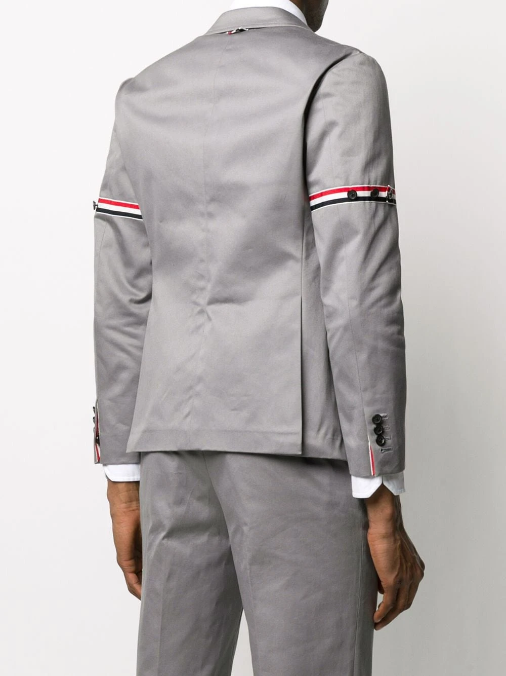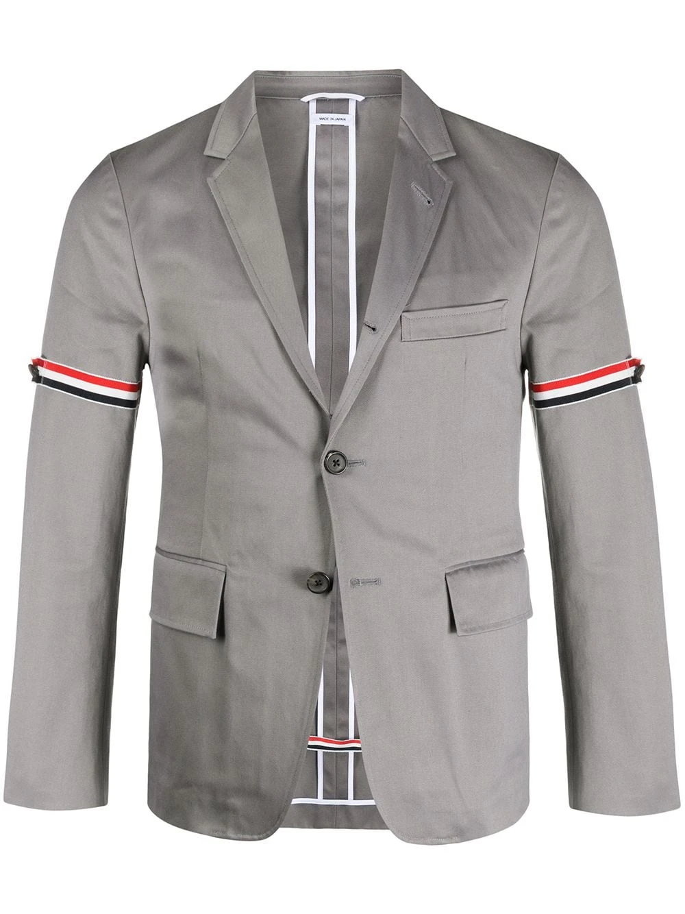 Don’t be afraid to stand out from the crowd. Dare to be different with this cotton unconstructed grosgrain armband sport coat from Thom Browne. Its red, white and blue stripes add a sporty and casual finish to this tailored design – making it a unique addition to your wardrobe. Featuring notched lapels, a button fastening, cropped sleeves, flap pockets and RWB stripes.