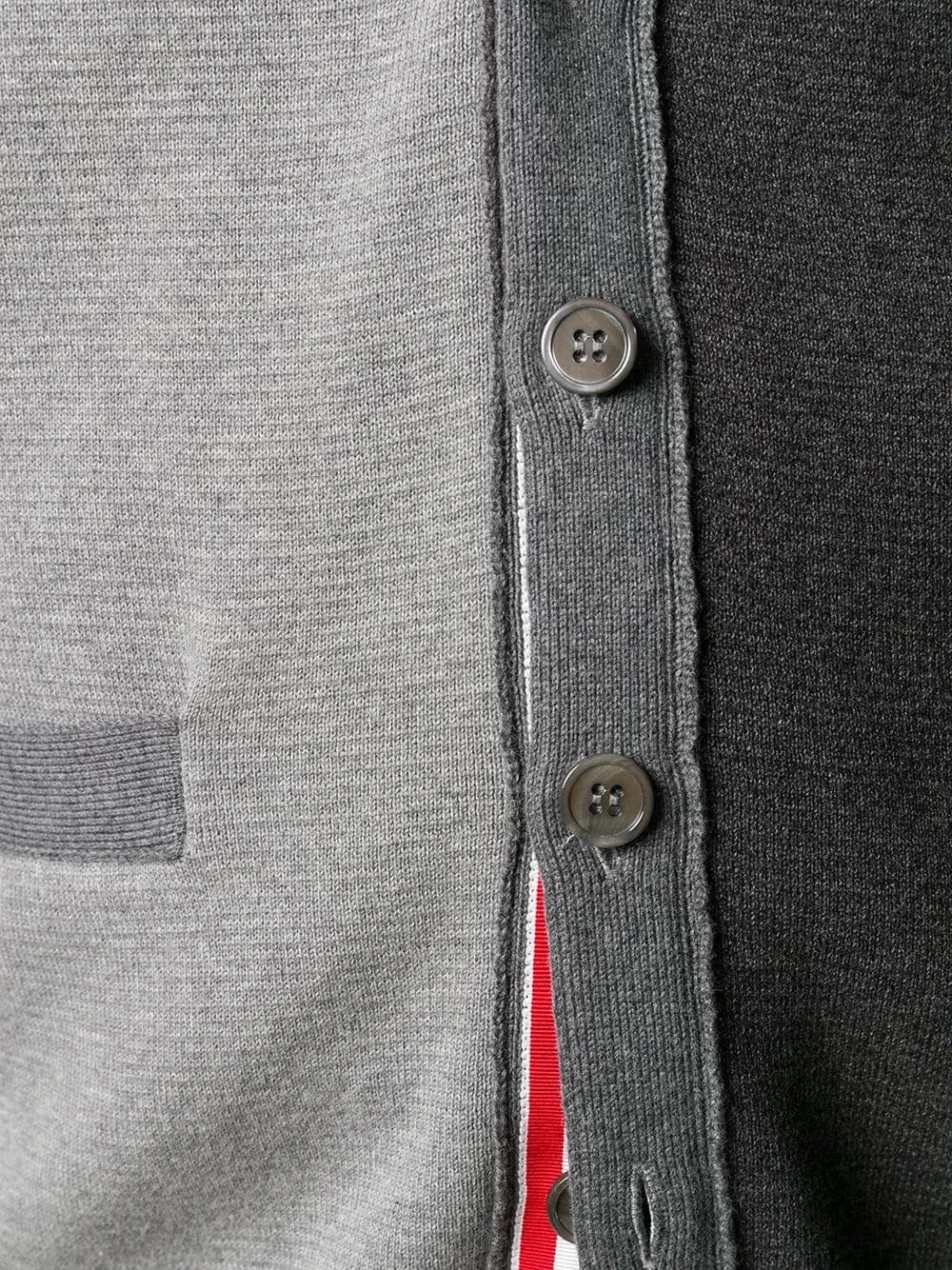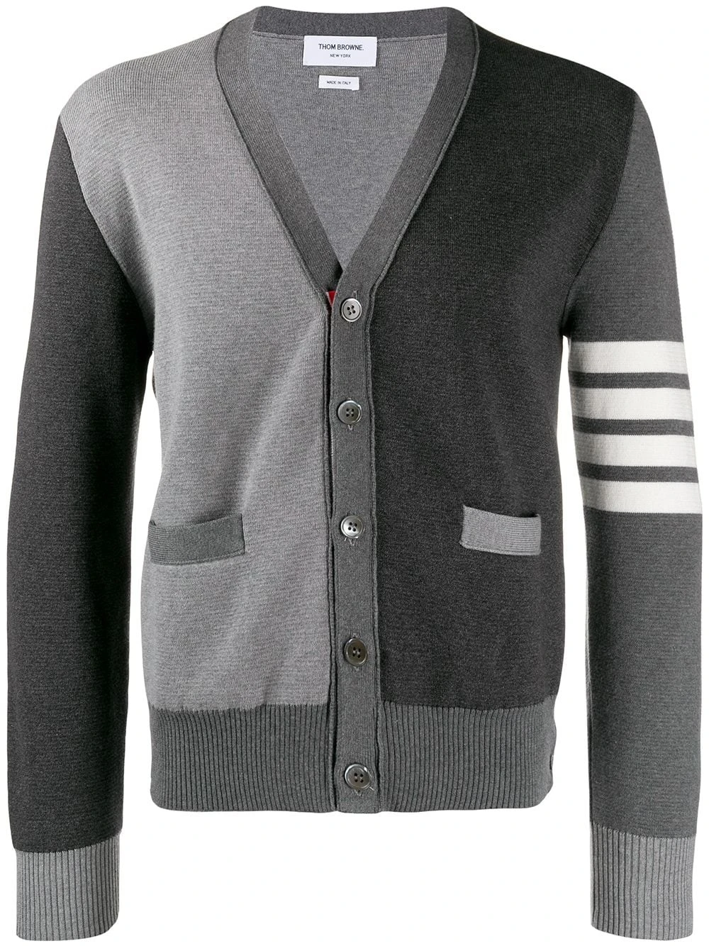 Thom Brown’s expertise in technical, tailored and luxuriously fabricated aesthetic is clearly evident in this cotton 4-Bar V-neck cardigan. Featuring a v-neck, a front button fastening, long sleeves, a ribbed hem and cuffs, two front pockets, a tonal design and a 4 bar detail.