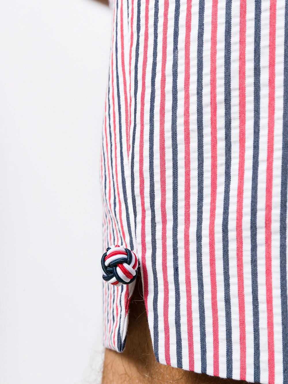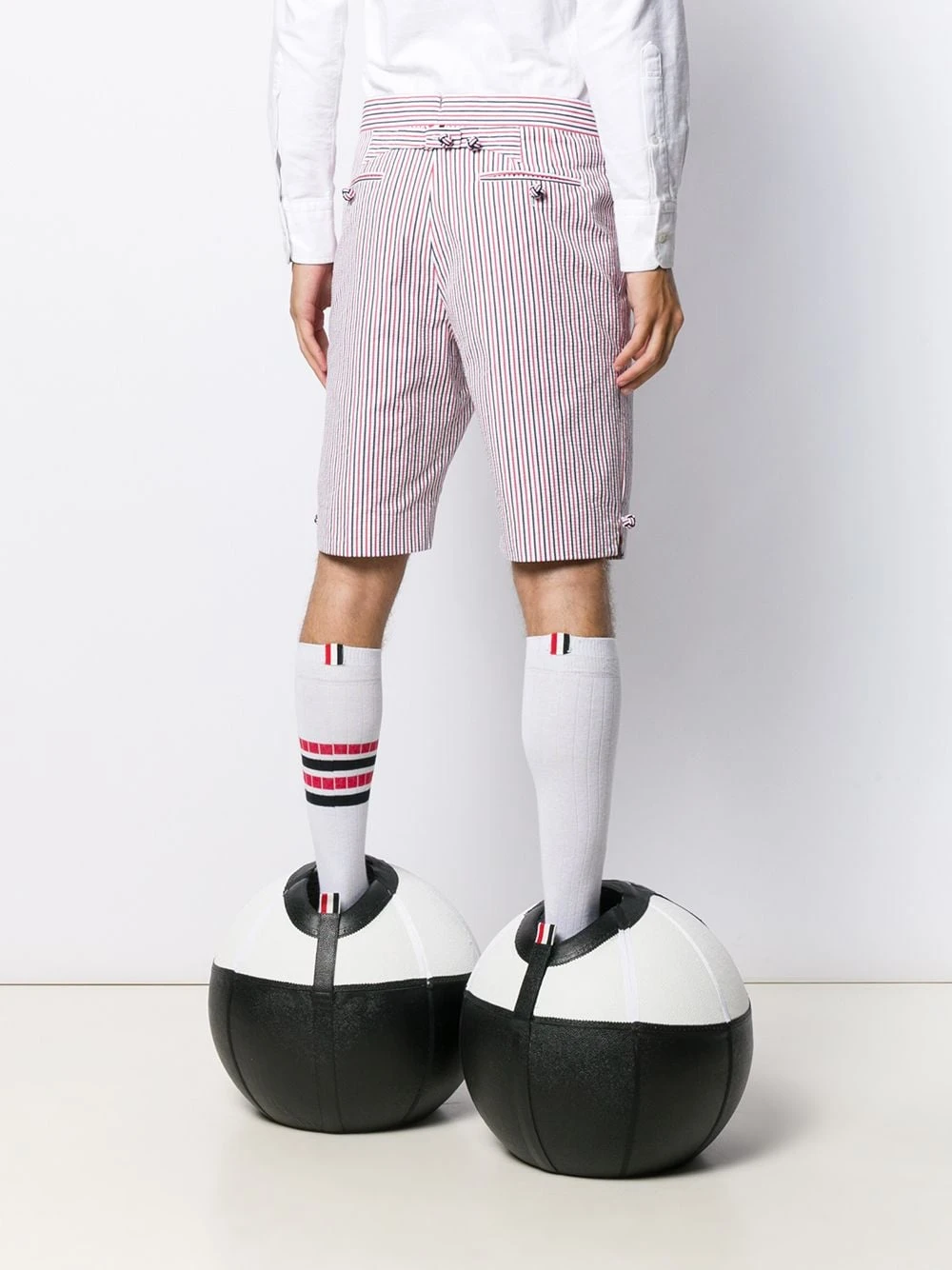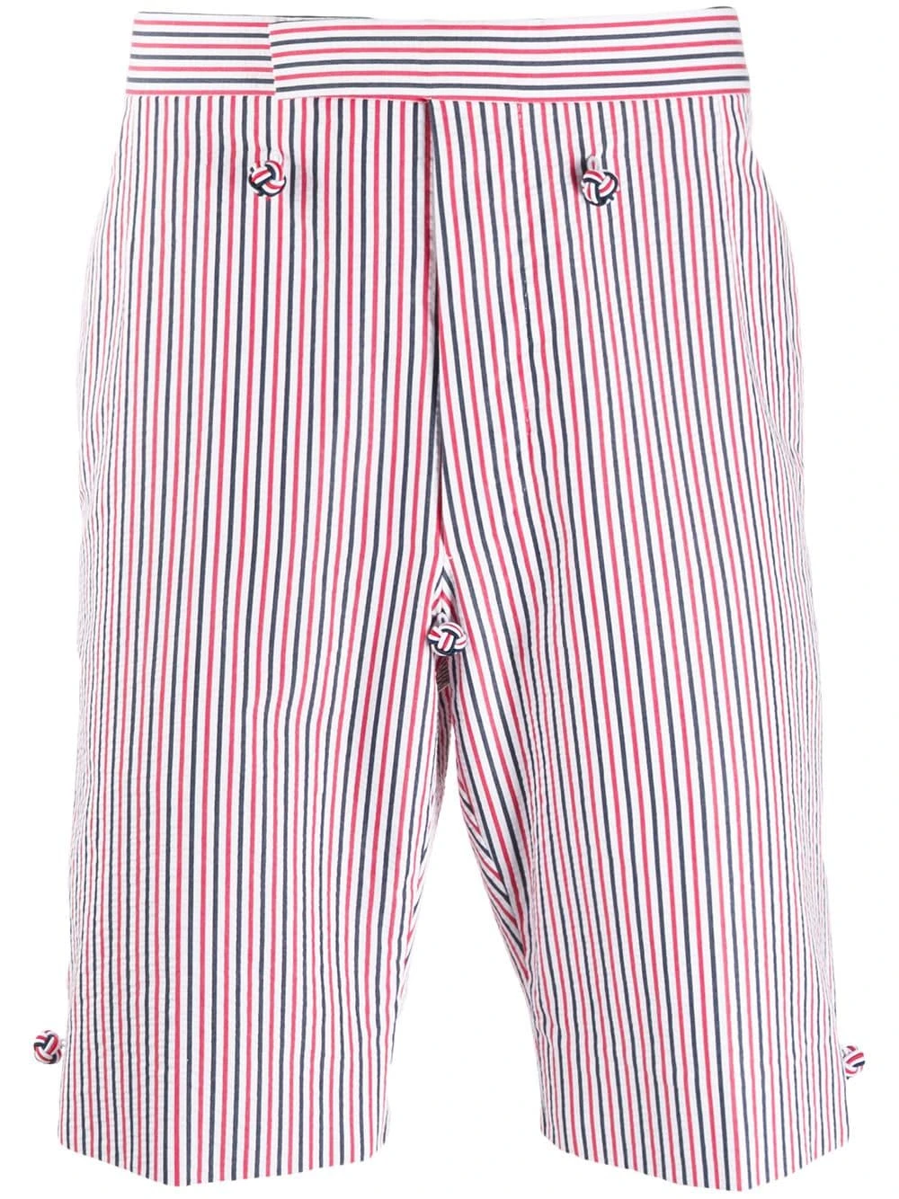 βTheyβre the type of items that I really hope and I do think will be in vintage stores in 20, 30 years,β says Thom Browne about his innovative garments, widely recognised by many museums and style connoisseurs around the world, as seen in these red, white and navy blue cotton backstrap striped shorts.