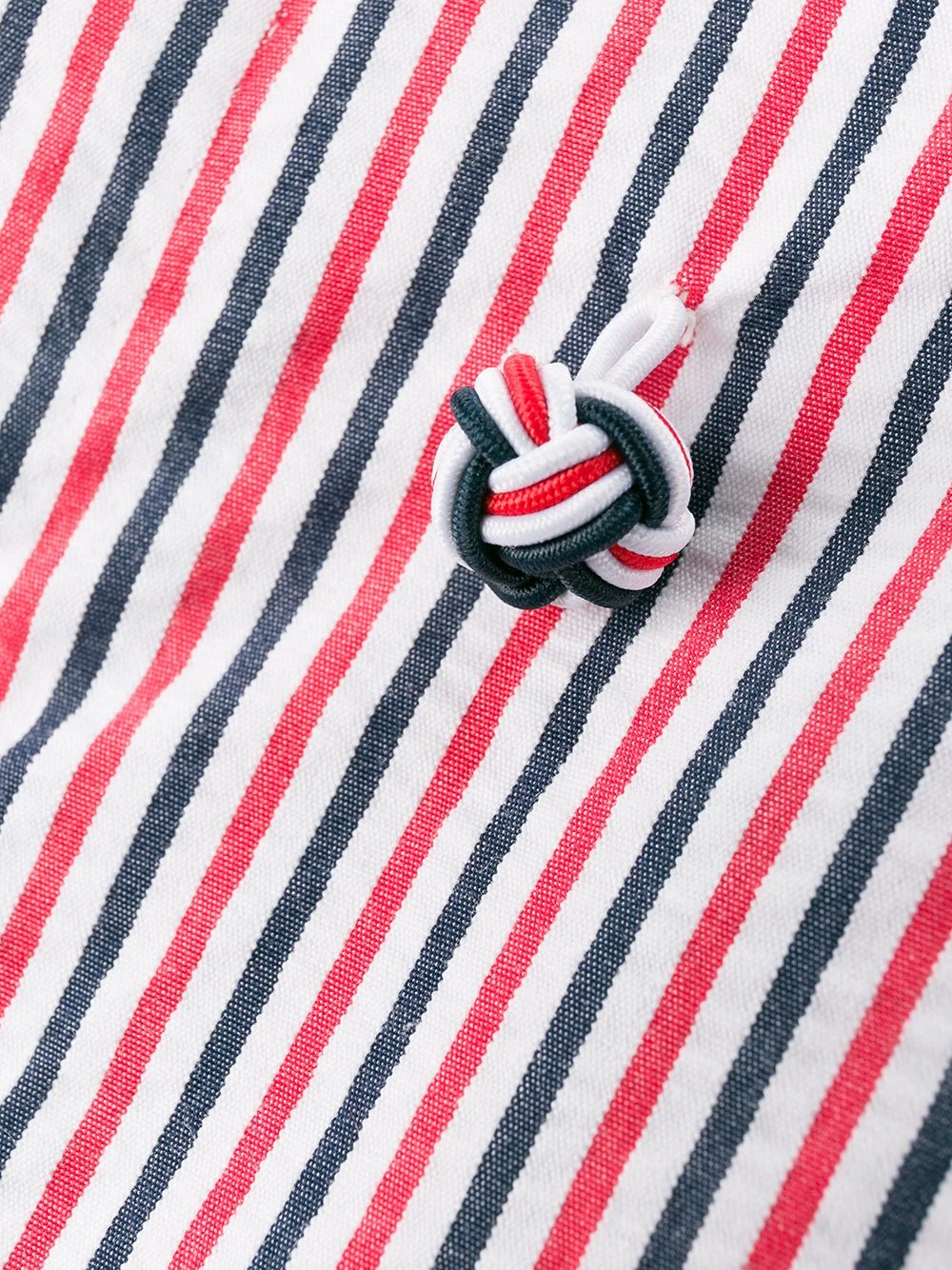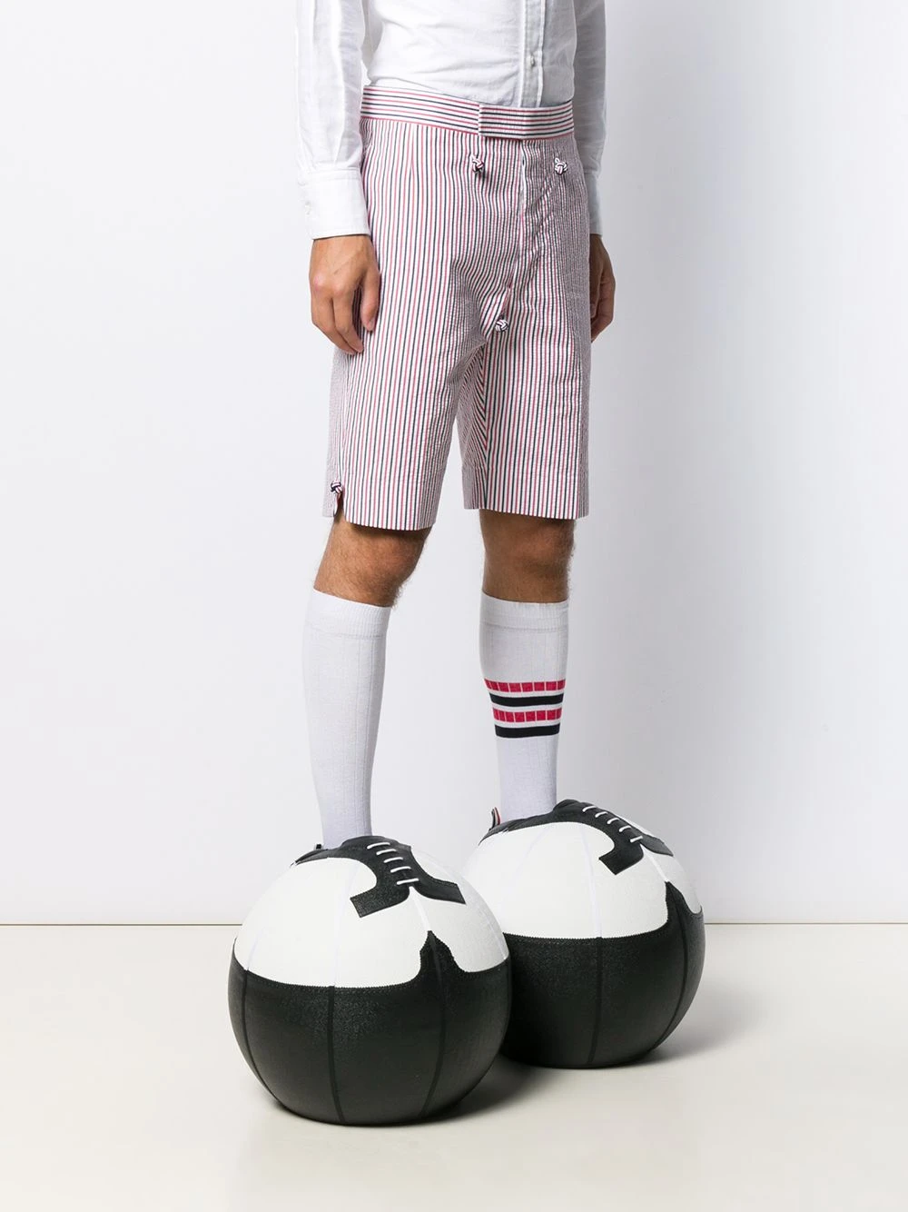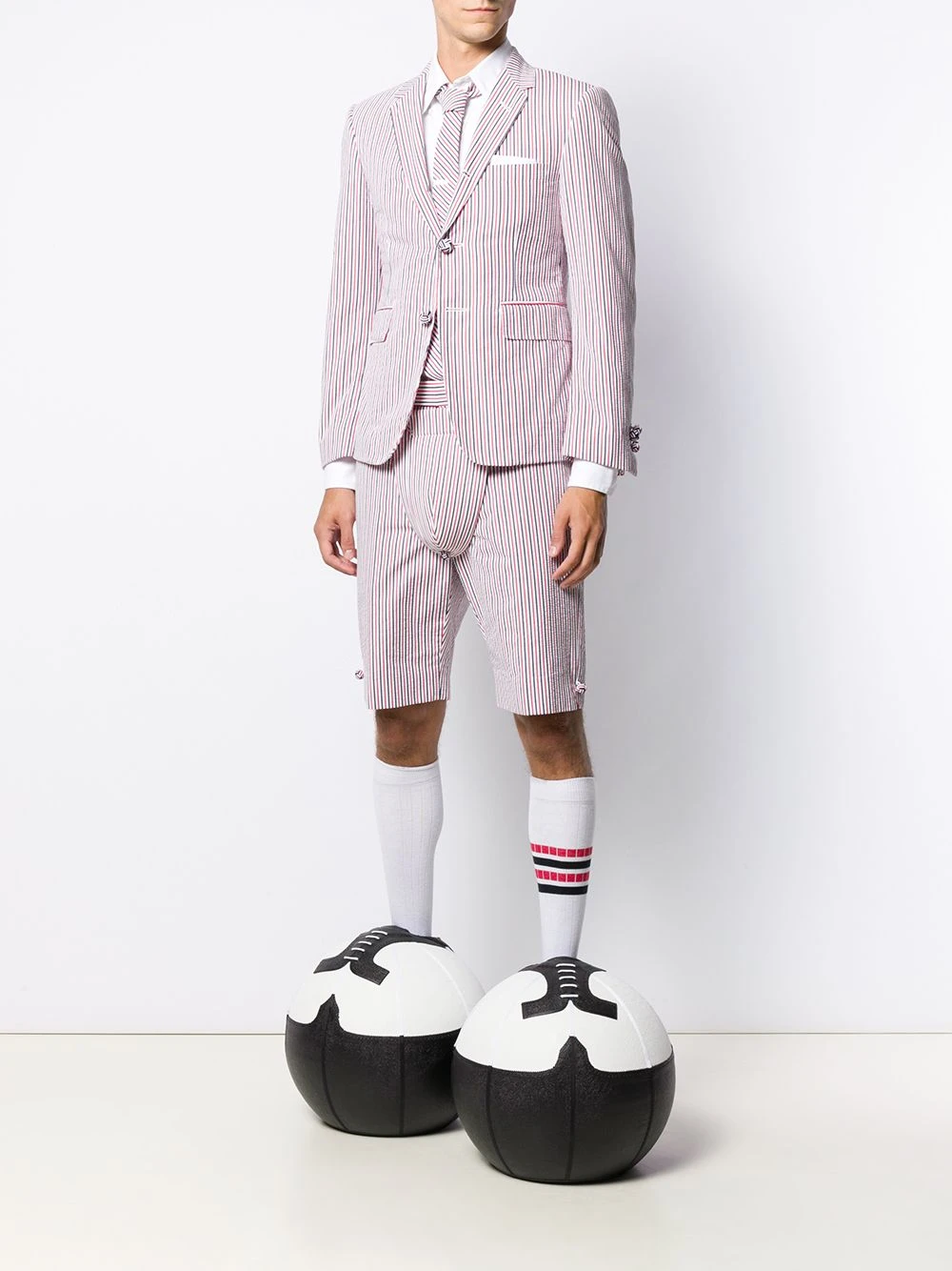 βTheyβre the type of items that I really hope and I do think will be in vintage stores in 20, 30 years,β says Thom Browne about his innovative garments, widely recognised by many museums and style connoisseurs around the world, as seen in these red, white and navy blue cotton backstrap striped shorts.