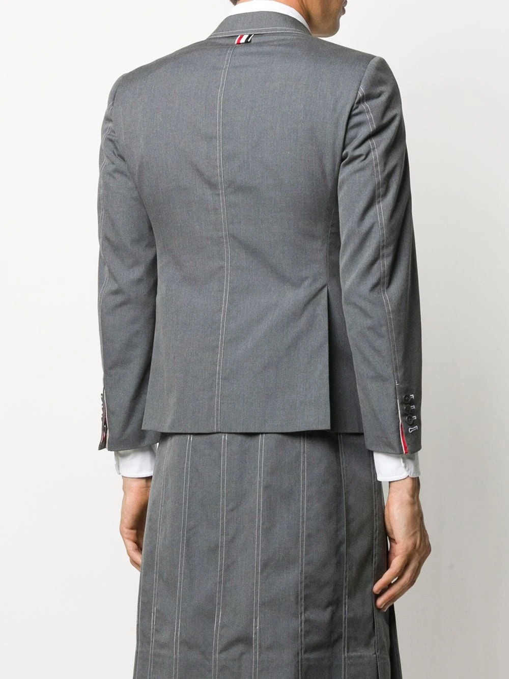 Sport quintessential British suiting in Thom Browne. Classic construction is made with a modern twist. Top notch.