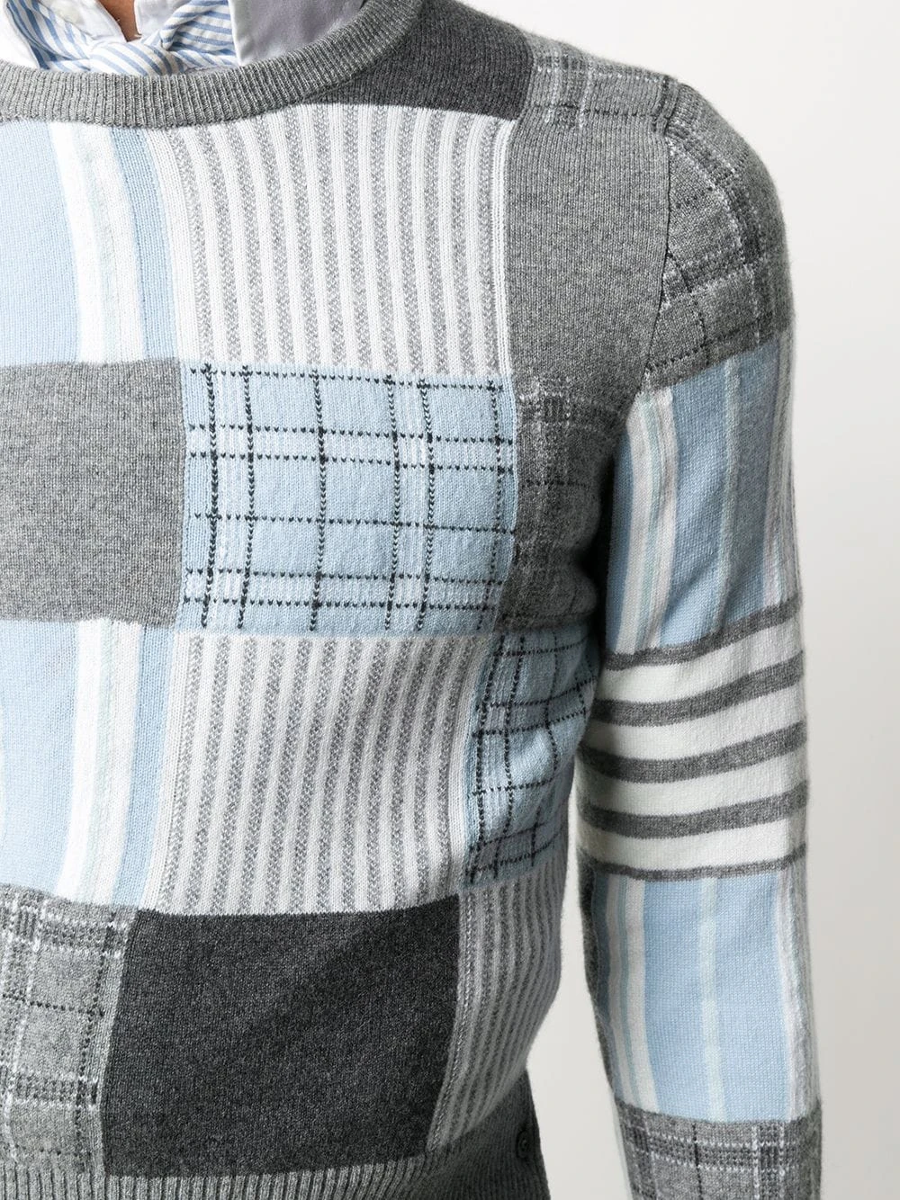 When it comes to jumpers, versatility is key. Decorated with a pattern mix, this patchwork knit jumper from Thom Browne will combine with pretty much everything you have in your closet. Easy, and always classy.