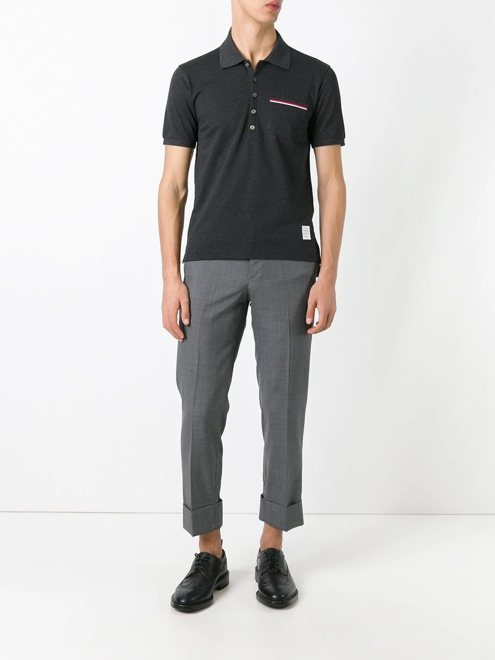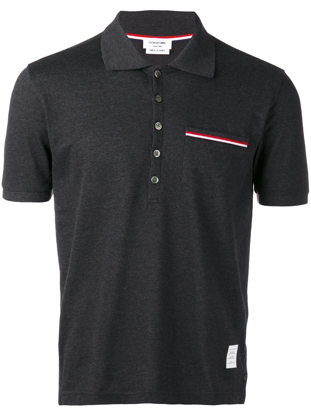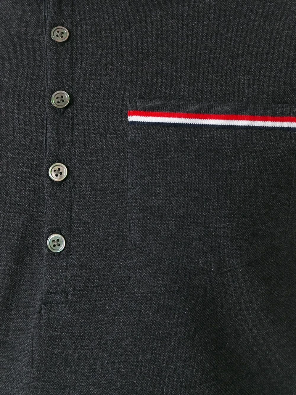 Dark Grey cotton Rwb Pocket Trim Piqué Polo from Thom Browne.