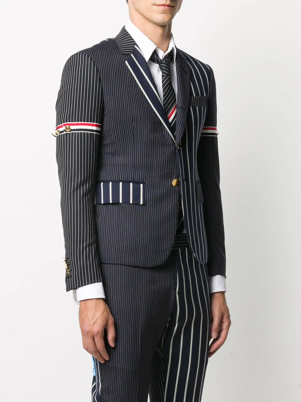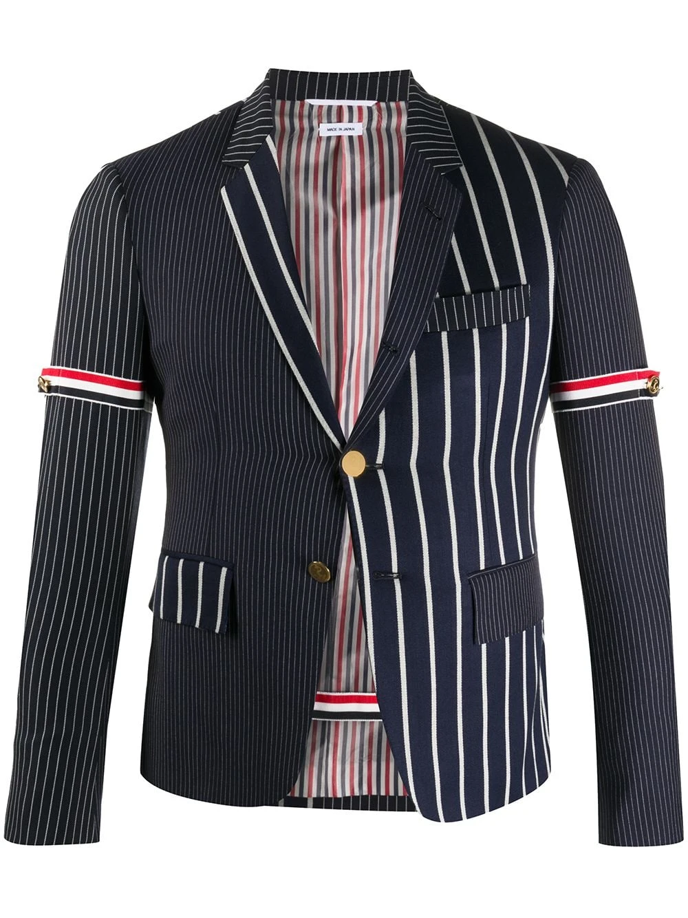 It’s all about the stripes. And the proof is in this asymmetric sports blazer from Thom Browne. Make your outerwear the focal point.